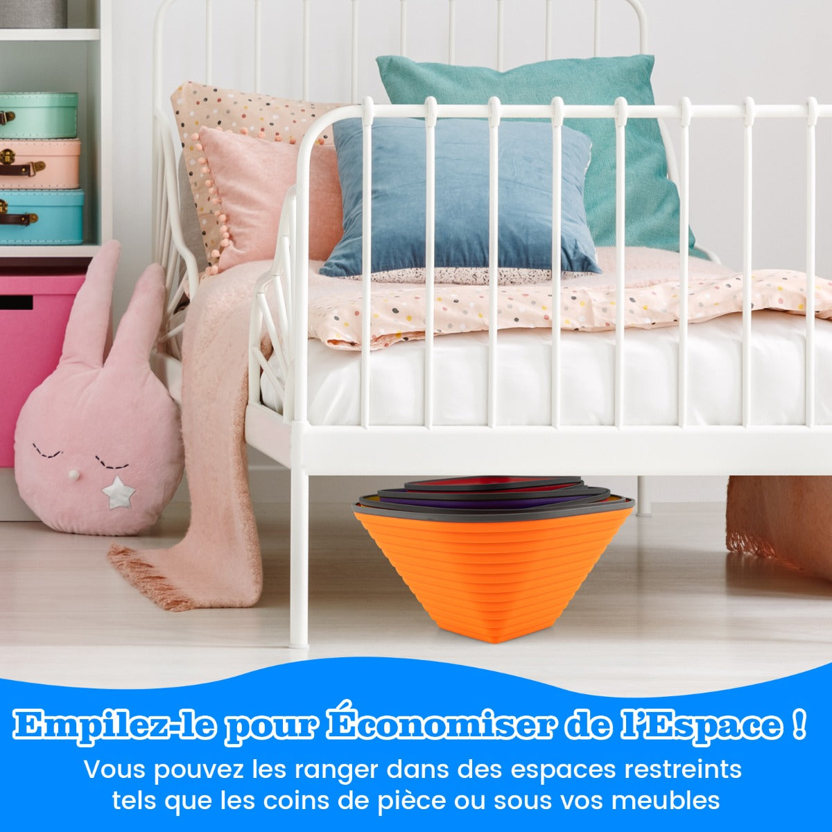 This versatile set features varying sizes, colors and steepness, offering endless configurations to match the need of any age groups. As kids navigate the stones, they'll enhance their balance, coordination, and strength. They can also develop their spacial cognition and color perception abilities, all while having fun with you or their friends. With their generous loading capacity of 80 kg per stone, non-slip tops, and TPE-covered rims, these stepping stones keeps your little one safe during playtime. Thanks to their water-resistant materials and stackable design, you can simply rinse the stones and store them where you want, even in tight spaces such as room corners or under your furniture. Ideal for kids over 3, the set is compliant to EN71 and REACH standards. Gift your child a fun and skill-building play experience with this stepping stone set! 11 Pcs Stepping Stone Set: This dynamic stepping stone set includes 4 small, 4 medium, 2 large and 1 extra large stones, allowing for endless course arrangements. With varying steepness, these stepping stones suit different skill levels, offering lasting challenges as kids grow. Develop through Games: Designed to keep your little ones active, these stepping stones invites hops and leaps, promoting kids’ balance, coordination and muscle strength with every step they take. It is also an educational tool for teaching colors and numbers, all through playful balance games. Non-Slip Safe Designs: These stepping stones feature embossed tops, so that kids can stride in confidence without skidding. The rim of each stone is fully covered in TPE to prevent slips and floor damages, keeping it stable indoor and outdoors on carpets, lawns, and sands. Quality and Easy Upkeep: Crafted from child-safe PP, these robust balance stones support up to 80 kg, so that parents can also share the fun. Washable and fade-resistant, a simple rinse is all you need to keep the set in its optimal state when the game time is over. Perfect Gift and Easy Storage: A wonderful gift for children above 3, this stepping stone set enhances social play with peers and also family members. After playtime, the stones easily stack for compact storage, keeping play areas neat and tidy.