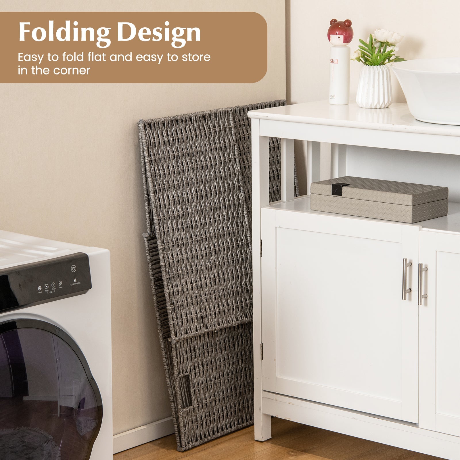 - Colour: Grey Materials: PP Rattan, Polyester Cotton, PE, Metal Product Dimension: 56 x 33 x 61 cm (L x W x H) Weight Capacity of Laundry Hamper: 45 kg Weight Capacity of Each Liner Bag: 5 kg