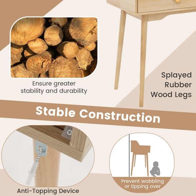 Featuring a spacious desktop, two large drawers, and a hutch with fixed dividers, this computer desk provides ample workspace and organized storage for all your office supplies. The hutch also serves as a monitor stand, reducing neck strain by raising the screen to eye level. The splayed rubber wood legs provide enhanced stability and durability, while the added anti-topping device provides extra security. Perfect as a computer workstation, writing desk, or vanity table, it effortlessly adapts to any setting. Organized Storage Solution: The computer desk features a hutch containing fixed dividers for neatly storing books and stationery or showcasing cherished decorations. Additionally, it offers two spacious drawers for ample storage, keeping your workspace clutter-free. Spacious Work Area: Boasting a large 120 x 48 cm (L x W) desktop, this writing desk provides plenty of room for multitasking and supports increased productivity. It accommodates a variety of office supplies from laptops to desk lamps, all within arm’s reach for a streamlined workflow. Ergonomic Monitor Stand: The functional hutch doubles as a monitor stand, providing enhanced comfort by elevating the screen to eye level. It reduces neck strain and helps maintain a better posture during long working hours while saving workspace. Stable Construction: Crafted with splayed rubber wood legs, the study table boasts a sturdy build that ensures stability and longevity. The added anti-topping device provides extra security, preventing any wobbling or tipping, making it a safe choice for any home office or study area. Versatile and Stylish Design: With its clean lines and natural color, this desk seamlessly blends into any room. Perfect for home offices, bedrooms, or living areas, it functions as a computer workstation, writing desk, or elegant vanity table, adding both style and functionality to your space.