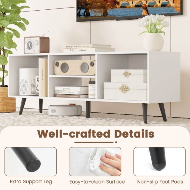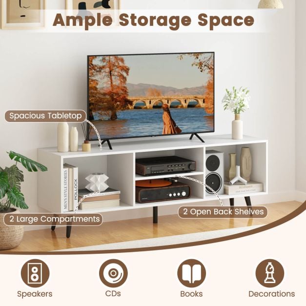 120cm Mid Century Modern TV Stand with Shelves and 5 Metal Legs-White