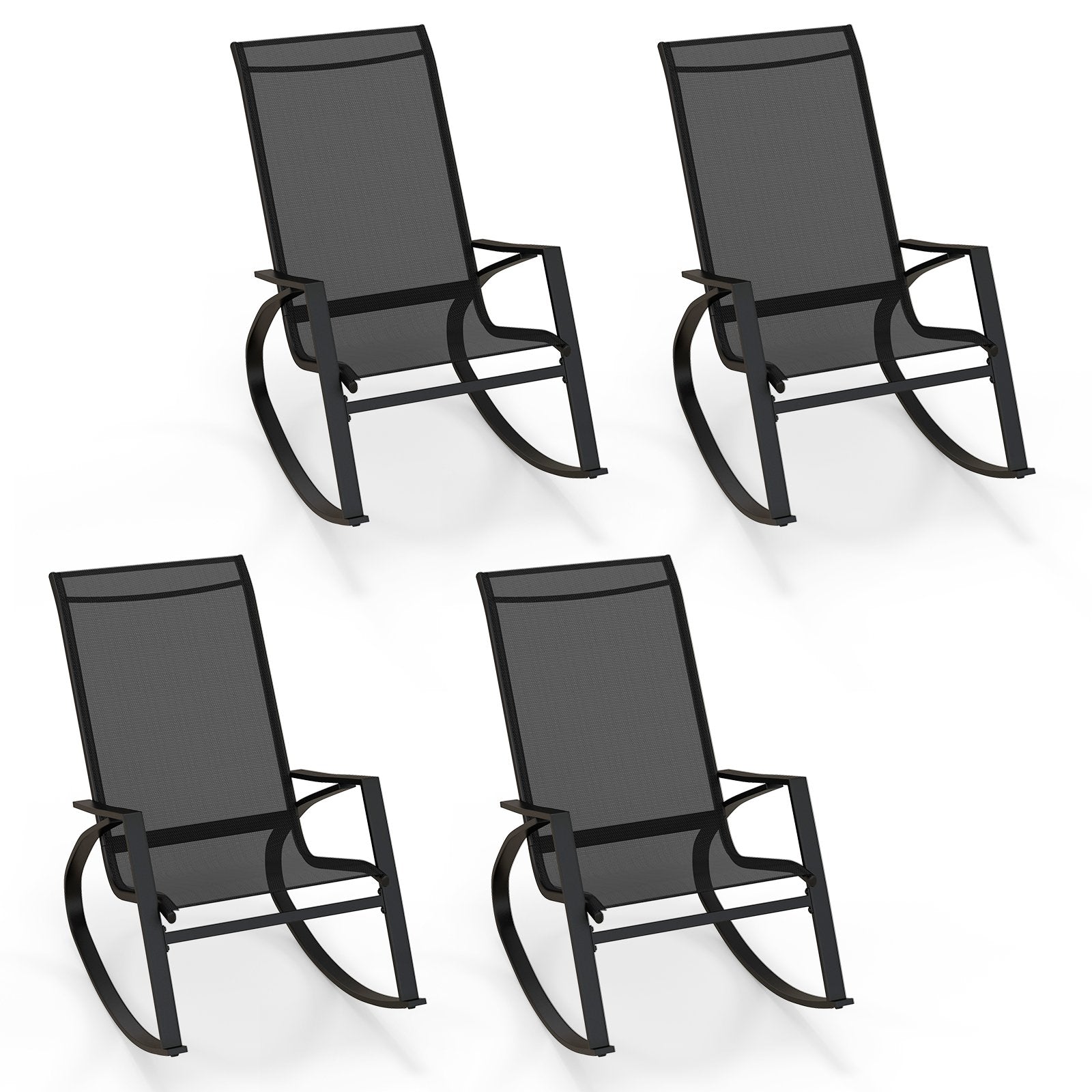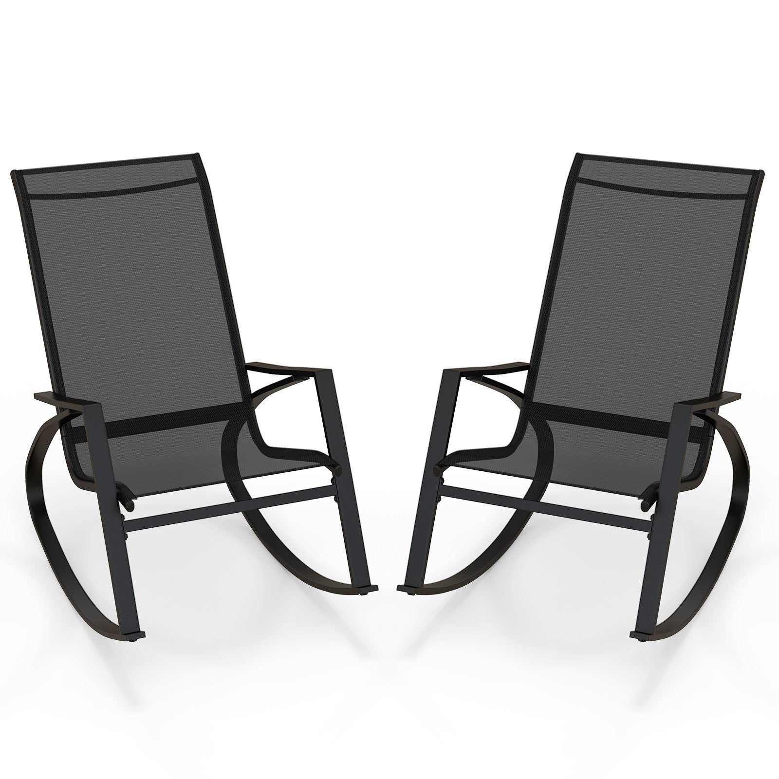 2 Pieces Patio Rocking Chairs with Ergonomic Backrest and Safe Stoppers-Black