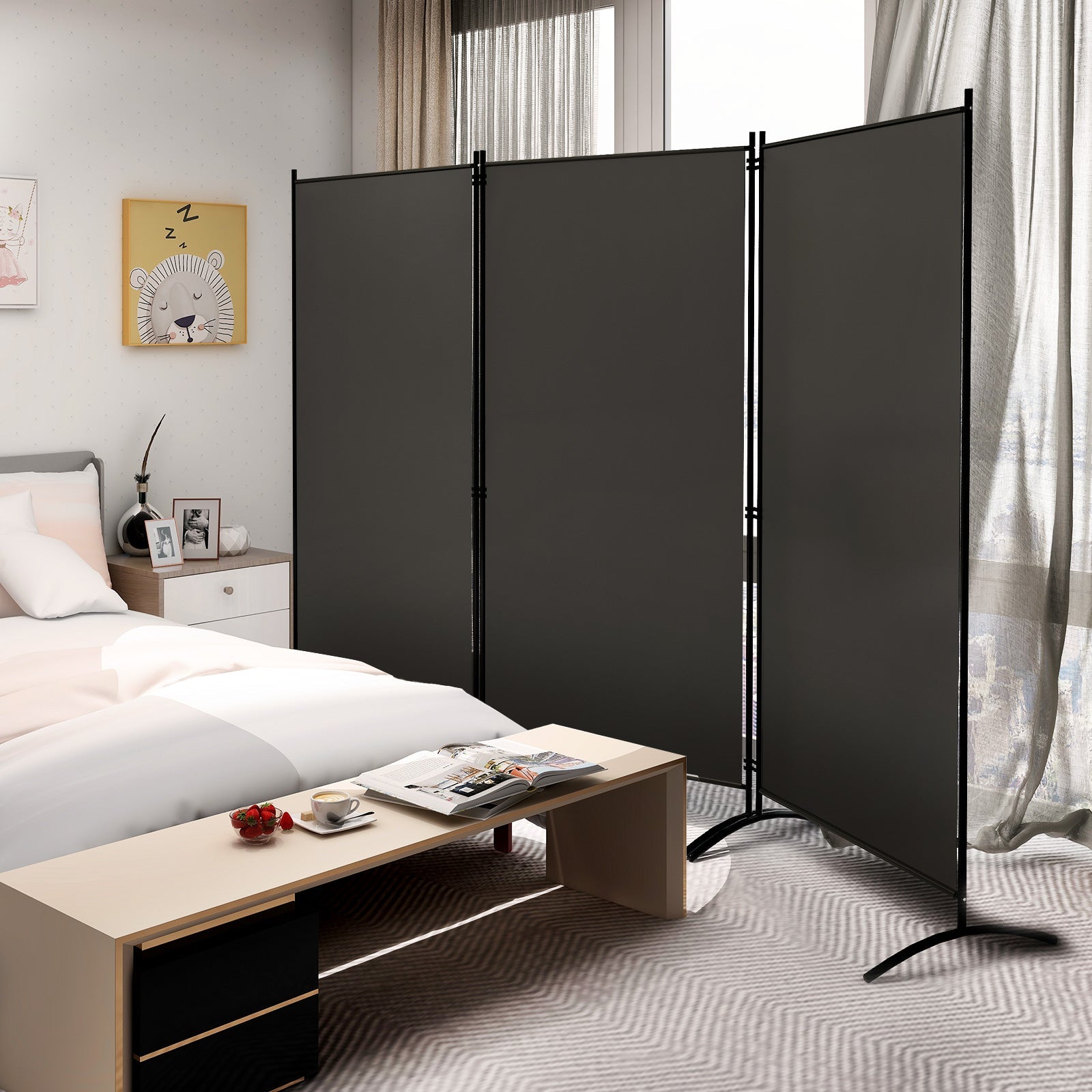 3 Panel Folding Room Divider-Grey