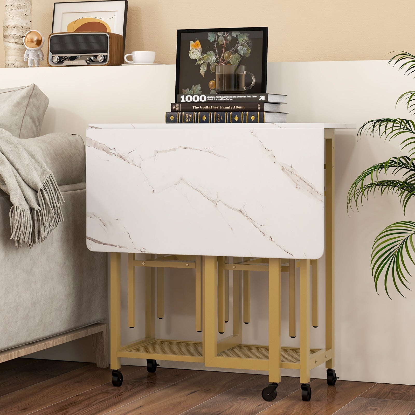 3 Pieces Extendable Dining Table Set with 6-Bottle Wine Rack-White