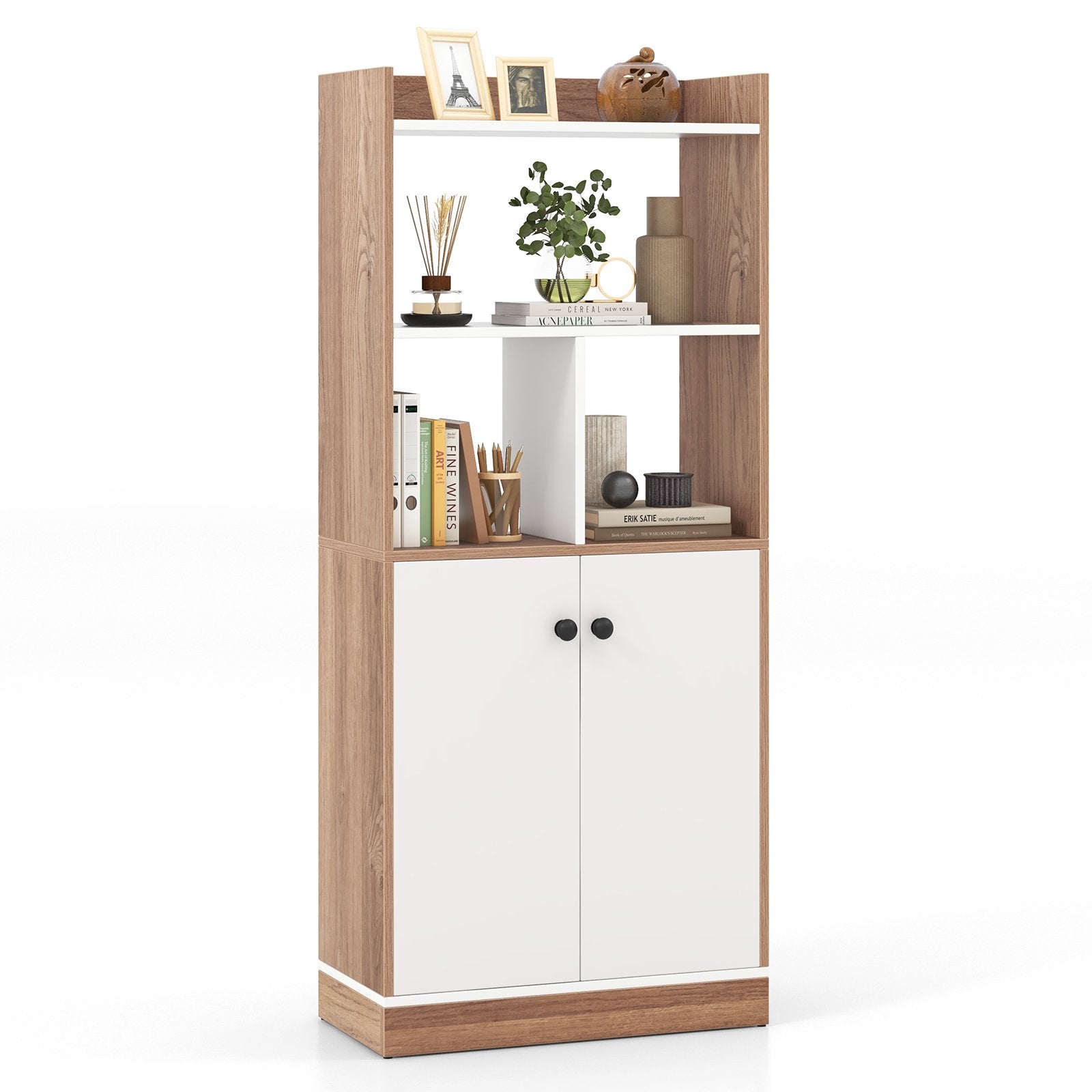 3-Tier Tall Bookcase with Double-Door Cabinet