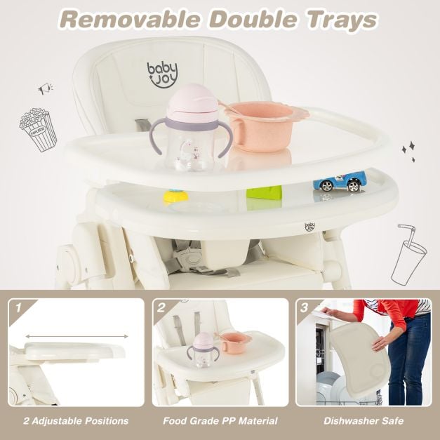 4-in-1 Foldable Baby High Chair with 6 Adjustable Heights and 5-Position Backrest-Beige