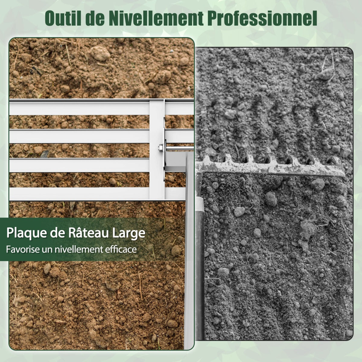 42 x 10 Inch Lawn Leveling Rake with Ergonomic Handle-Silver