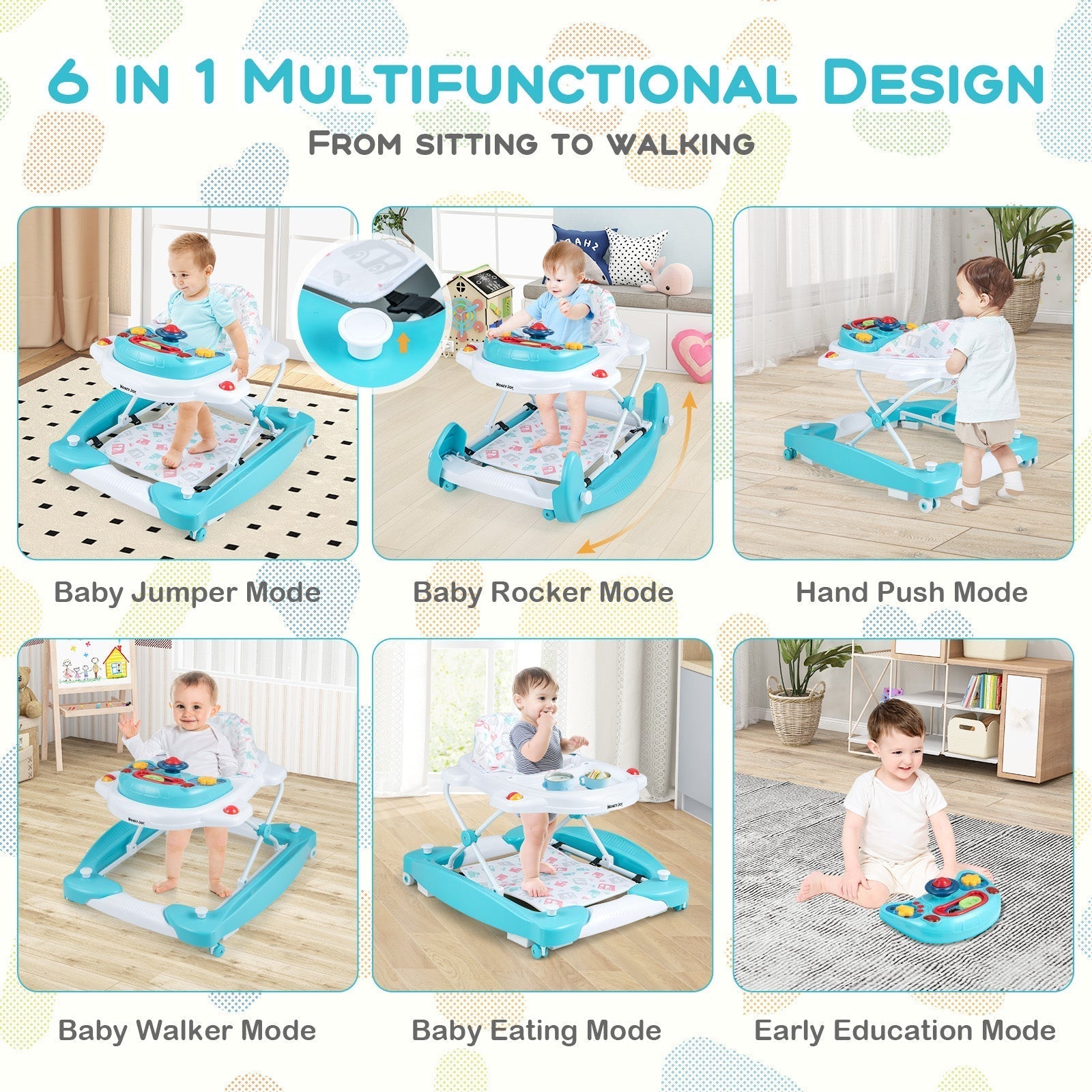 6 in 1 Foldable Baby Walker with Adjustable Height-Green