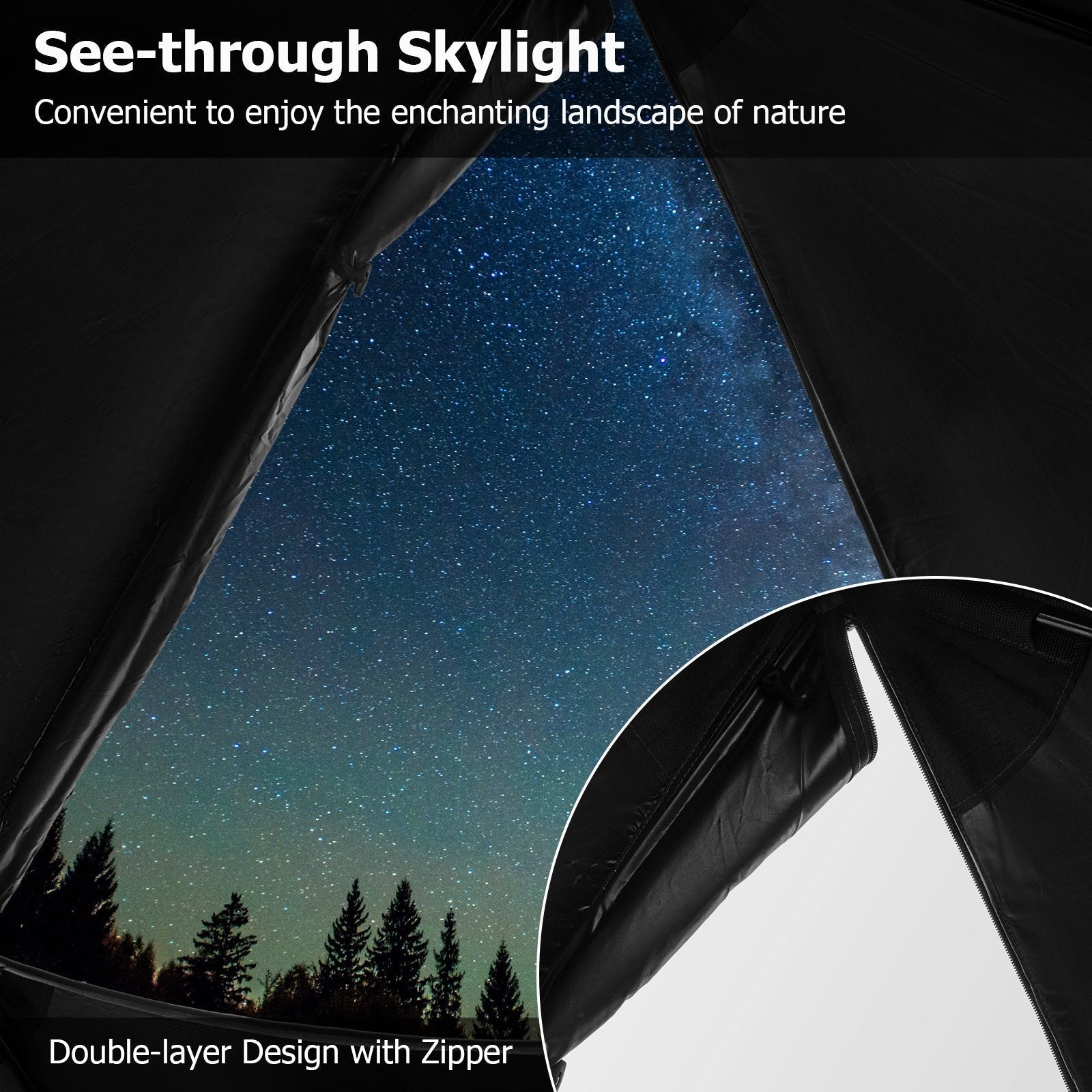 This instant pop-up camping tent measures 285 x 250 x 147 cm (L x W x H), providing ample space for 4-6 people. It can be an ideal choice for various outdoor activities, such as camping, picnics, barbecues, trips, beach relaxation, and more. Particularly, this tent features a transparent skylight with a zippered cover, which could bring natural light and starlit views into your camping experience. The canopy and rainfly are crafted of PU-coated polyester fabric, which is built to withstand various weather conditions. And the bottom is crafted of PE tarp, keeping the inside dry and comfy. Other than that, it is equipped with 12 ground stakes and 6 wind ropes, ensuring excellent stability and wind resistance. Additionally, there are 3 mesh screen doors for easy access, and 3 double-layer mesh screen windows for convection ventilation and privacy. Thanks to its pop-structure, you can easily set up or take down this tent in seconds by pulling or pushing rings. Also, it is designed with a portable carrying bag, thus you can take it anywhere you want. Weatherproof and Durable Material: The camping tent adopts a waterproof rainfly and canopy, which are made of premium 420D polyester fabric with PU coating, ensuring excellent sun and rain protection. Besides, it adopts a bottom PE tarp, offering reliable protection from water and the rugged terrain. (Note: Please avoid using it in heavy rain.) Skylight Design: The sun shelter comes with a transparent PVC skylight, allowing for exquisite stargazing and stunning view of nature from the comfort of your tent. And double-layer design allows you to adjust the skylight as needed. In addition, there is a detachable rainfly for added protection on rainy days. Pop-up Structure for Quick Setup: The instant camping tent comes with an upgraded pop-up structure, thus you can effortlessly install it in seconds. All you need to do is simply unfold the tent, pull 2 side rings, and secure the tent with ground stakes. Besides, it is also easy to take down by pushing all rings and then folding. Excellent Ventilation and 360° View: The outdoor sun shelter comes with 3 roll-up mesh screen windows and 3 large roll-up mesh screen doors, which could effectively promote air circulation while keeping “unexpected guests” away. And the door features double-sided zippers, providing easy access to get in and out. Stable and Sturdy Structure: The 4-season family tent is supported by high-strength fiberglass poles, ensuring excellent sturdiness and deformation resistance. Moreover, it boasts ring and stake fixations, wind rope and stake fixations, enhancing overall stability and security in windy conditions. Portable Design and Versatile Use: The family tent is designed with a portable carrying bag, making storage and transportation a breeze. It measures 285 x 250 x 147 cm (L x W x H), which could comfortably accommodate 3-4 sleeping bags. Whether it’s for camping, hiking, beach parties, outings, picnics, or trips, this portable sun shelter tent can be a perfect choice.