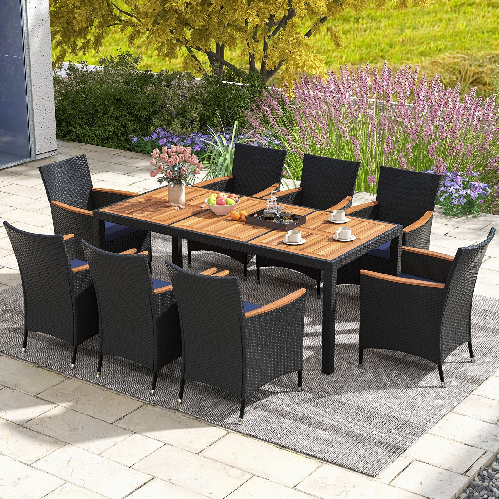 9 PCS Patio Dining Set for 8 Large Conversation Set with Umbrella Hole-Navy