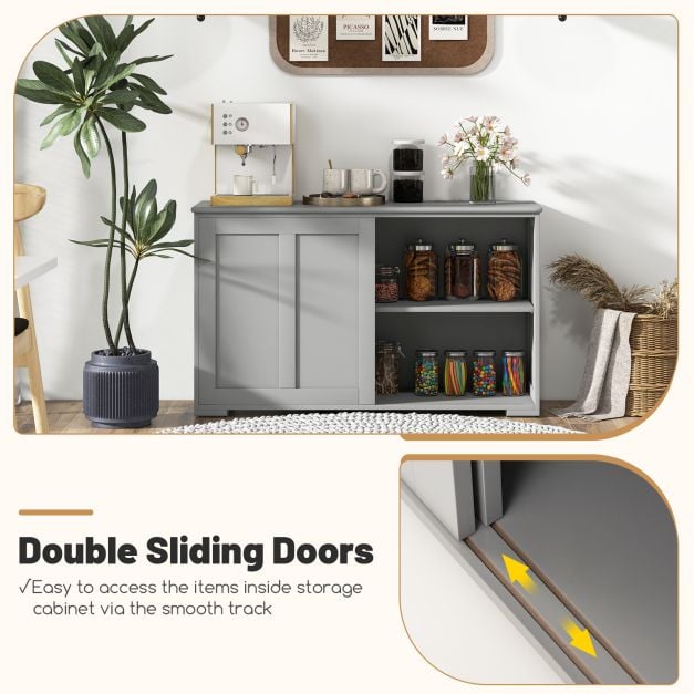 Antique Stackable Kitchen Storage Sideboard with Height Adjustable Shelf-Gray