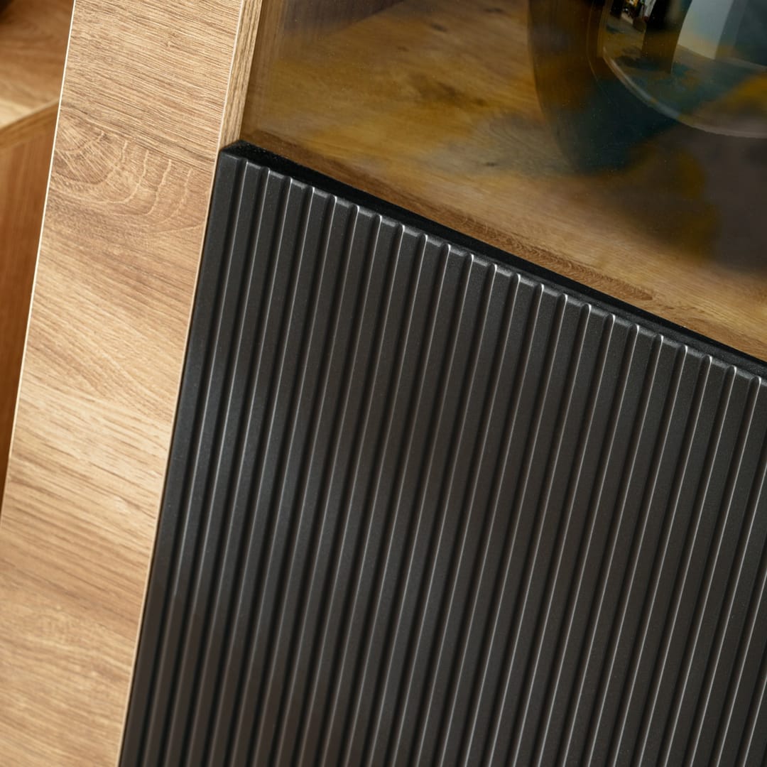 Elevate your interior design with the Aron Tall Display Cabinet. This stylish piece features a striking Oak Ribbeck and Black finish, designed to showcase your treasured items while offering ample storage. With its modern push-to-open system and integrated LED lighting, this cabinet is both a functional and eye-catching addition to your home.