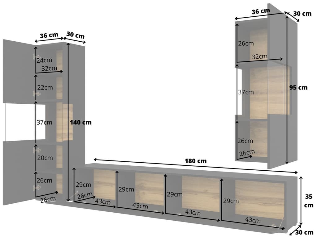 - Tall Cabinet: W36cm x H140cm x D30cm