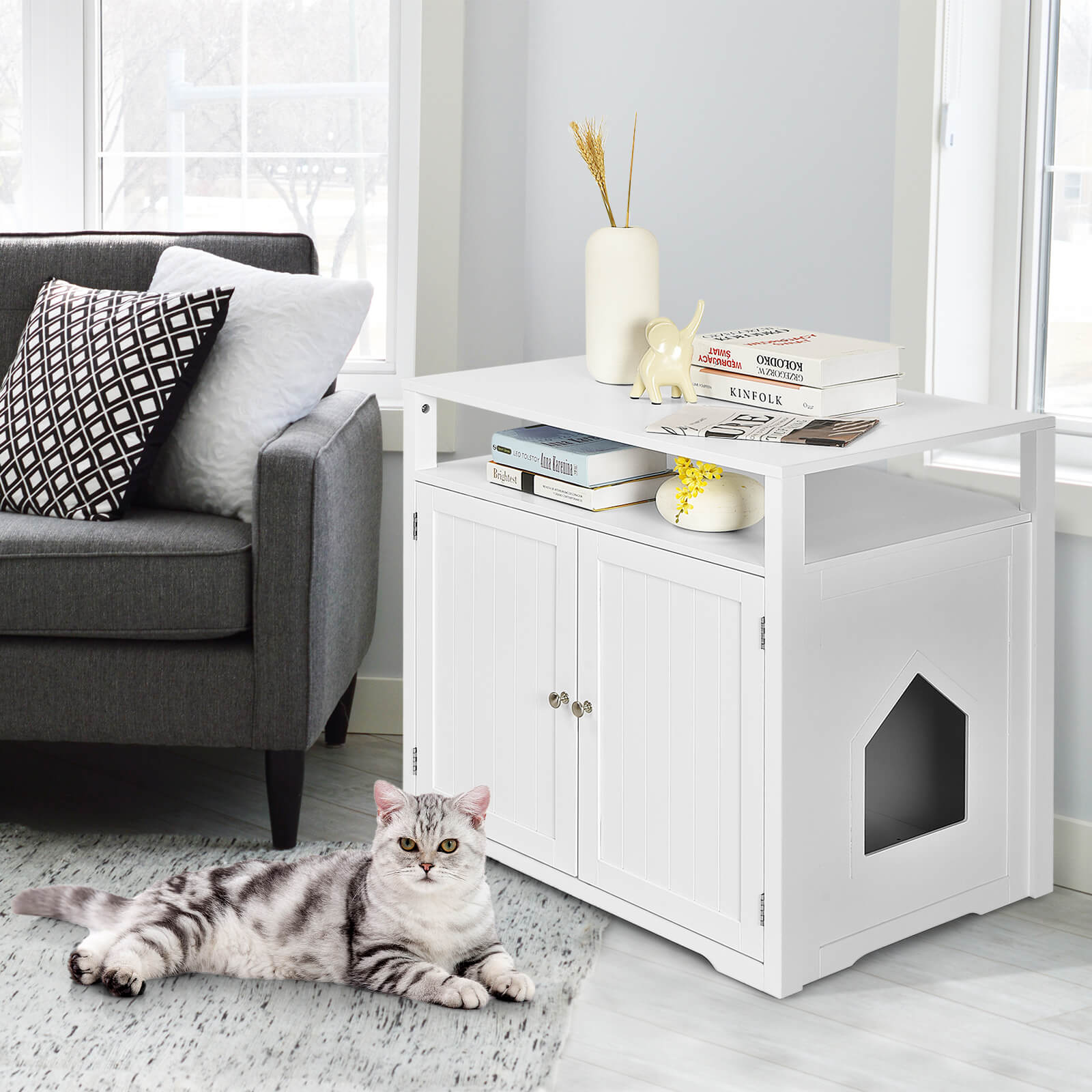 Cat Litter Box Enclosure with Adjustable and Removable Divider-White