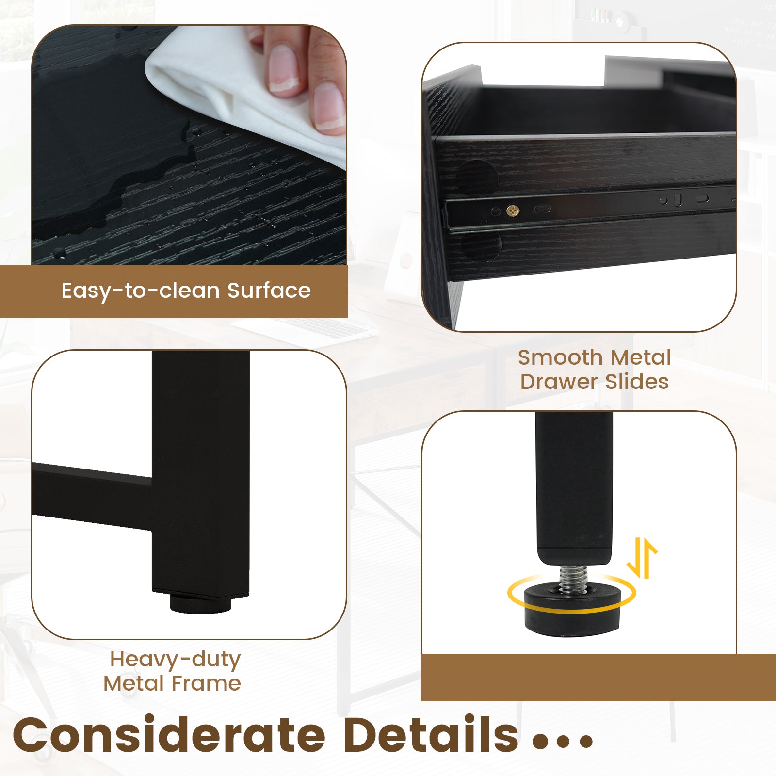 - 1 × Computer Desk with 2 Drawers with Storage for Home Office