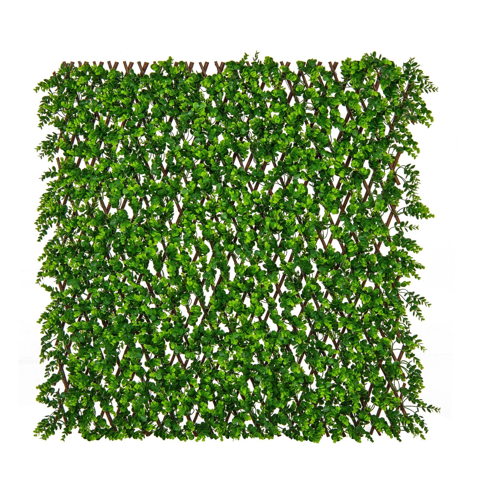 Create Stunning Landscapes for Your Living Space! This expandable fence privacy screen is crafted from natural willows and 100% PE leaves, which is not only odorless and safe but also resistant to sun and water, ensuring long-lasting durability without fading. Besides, the leaves mimic the appearance of real ivy leaves, which are designed to create an enchanting outdoor ambiance, transforming your space into a natural oasis. Thanks to its flexibly expandable design, it ensures a seamless fit wherever you place it. Whether you want to create secluded spots on your patio, add privacy to balconies, divide garden sections, or adorn interior spaces like offices or living rooms, this decorative faux eucalyptus fencing panel/decorative faux ivy fencing panel offers a convenient and maintenance-free solution for privacy and decoration. Premium Materials: The expandable faux greenery is meticulously crafted from a real willow frame, ensuring exceptional durability. And the leaves are crafted of 100% new PE material, which is sun-protective, waterproof, and fade-resistant while requiring minimal maintenance. Lush and Vibrant Appearance: The privacy screen boasts abundant 6-layer leaves and vivid eucalyptus leaves with gradient green hue, which look full-bodied and vivid while adding a touch of vitality. Additionally, the real willow frame brings the beauty of nature to the fence. Foldable and Expandable Design: With its flexibly adjustable width and length, the fencing panel can seamlessly fit into any area, and the recommended size is 180 x 90 cm(L x W). When not in use, it is easy to fold into a compact size for space-saving storage. Secure Attachment: The package includes several zip ties for securing the grass wall panels to railings or fences, or you can easily hang on walls with nails (not included). It is suitable for the concrete cement wall, brick wall, and wood wall, offering flexibility in placement. Indoor and Outdoor Application: Not only does this artificial hedge protect your privacy beautifully outdoors, but it also acts as a charming decoration piece that can be hung on any wall or in various locations around your home. Additionally, its proper gaps ensure adequate air circulation.