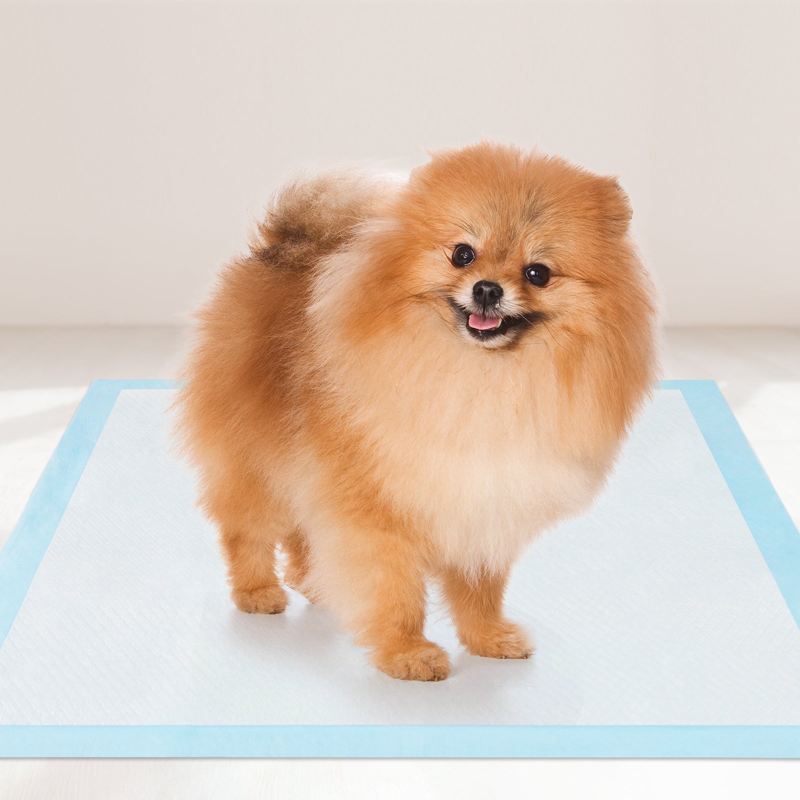 Colour: Blue+White Material: Non-woven Fabric, Fluffy Pulp, PE Film, Absorbent Tissue Pee Pad Size: 60 x 43 cm (L x W) Absorbent Surface Size: 55 x 37cm (L x W) Net Weight: 7 kg Count: 300 Box Qty: 1 (May vary by batch) Package Includes: 3 x Dog Pee Pad Packs