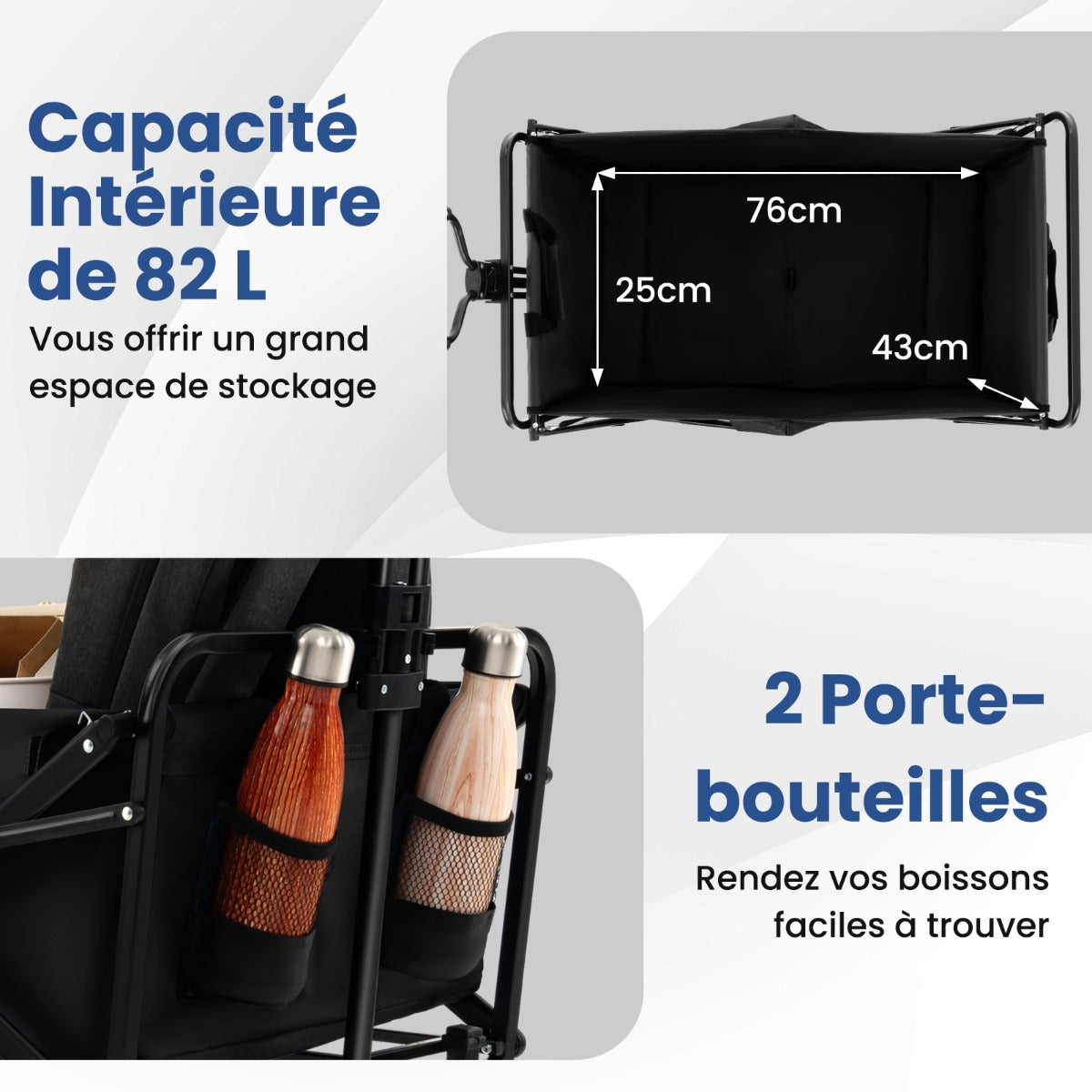eavy Duty Camping Garden Cart with Adjustable Handle and Drink Holders-Black
