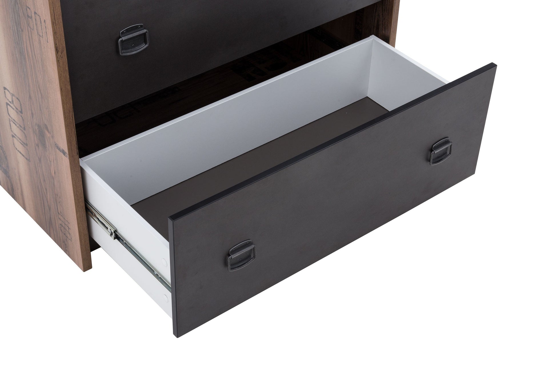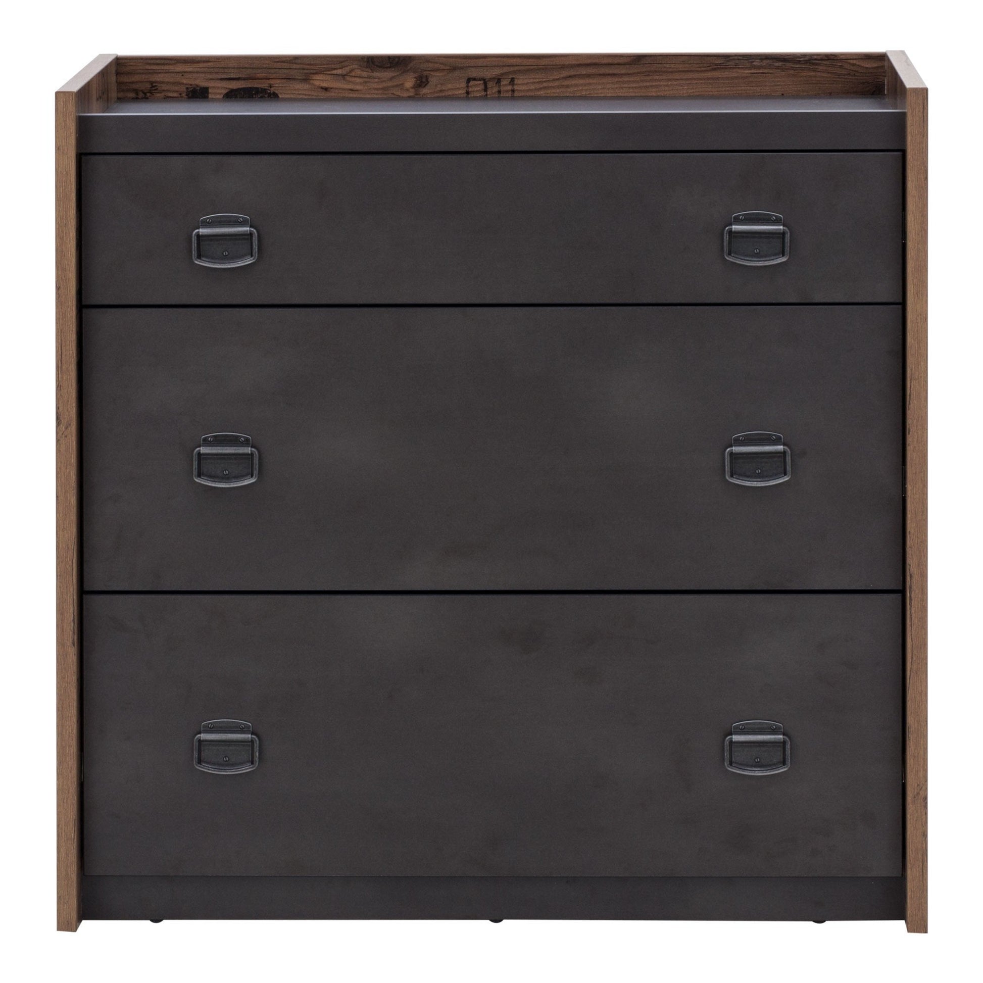 The Fargo 06 Chest of Drawers is designed with both style and practicality in mind. Featuring three spacious drawers on smooth ball rails, this chest makes it easy for your child to keep their belongings tidy. The robust metal handles add a modern touch, while the surface provides an ideal space for displaying treasured items or book collections. Elevate your child's room with this versatile piece of furniture that combines functionality and aesthetic appeal.