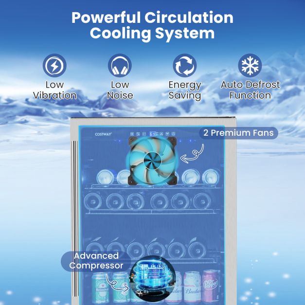 Freestanding Beverage Refrigerator 190 Cans Built-in Cooler-Silver