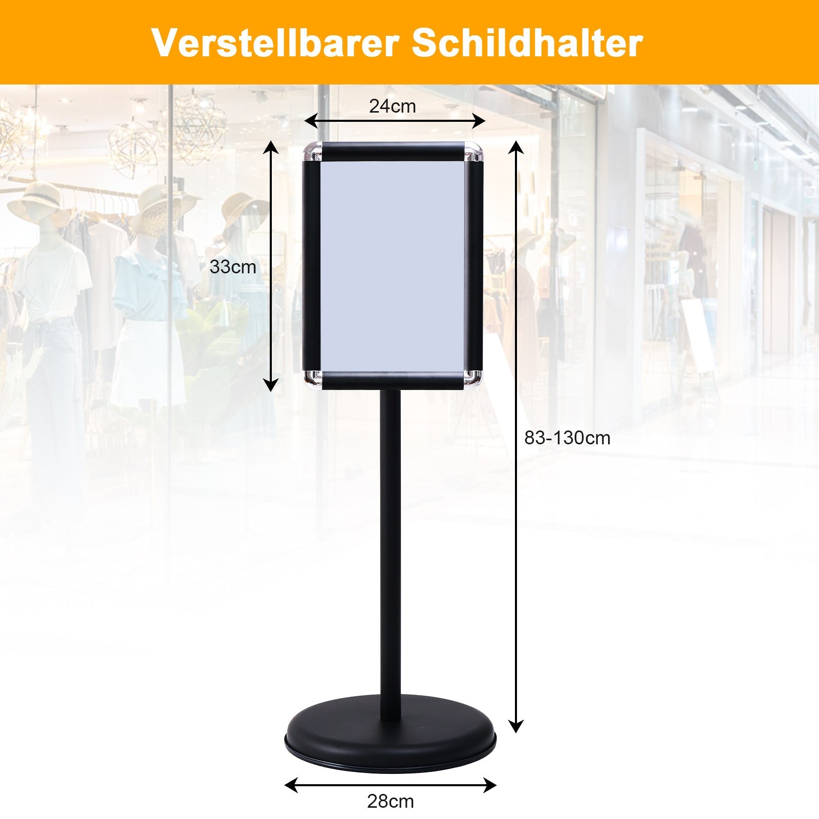 Freestanding Floor Standing Whiteboard, Rotating Aluminum Display Stand with Adjustable Height 83-130cm Black