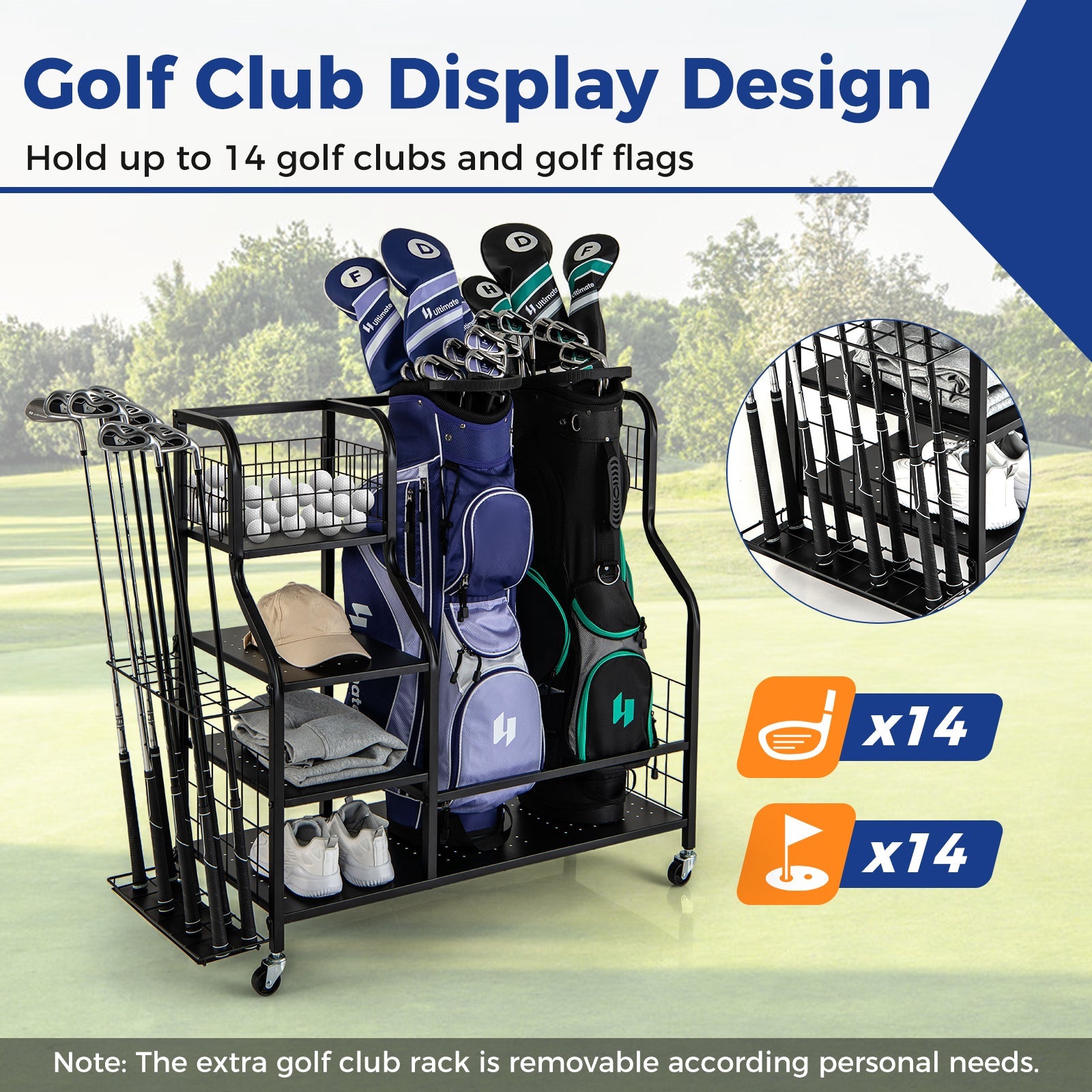 This golf bag organizer for 2 golf bags with golf clubs rack and lockable wheels-black is designed to keep your space organised while delivering reliable everyday functionality and a clean, modern look.