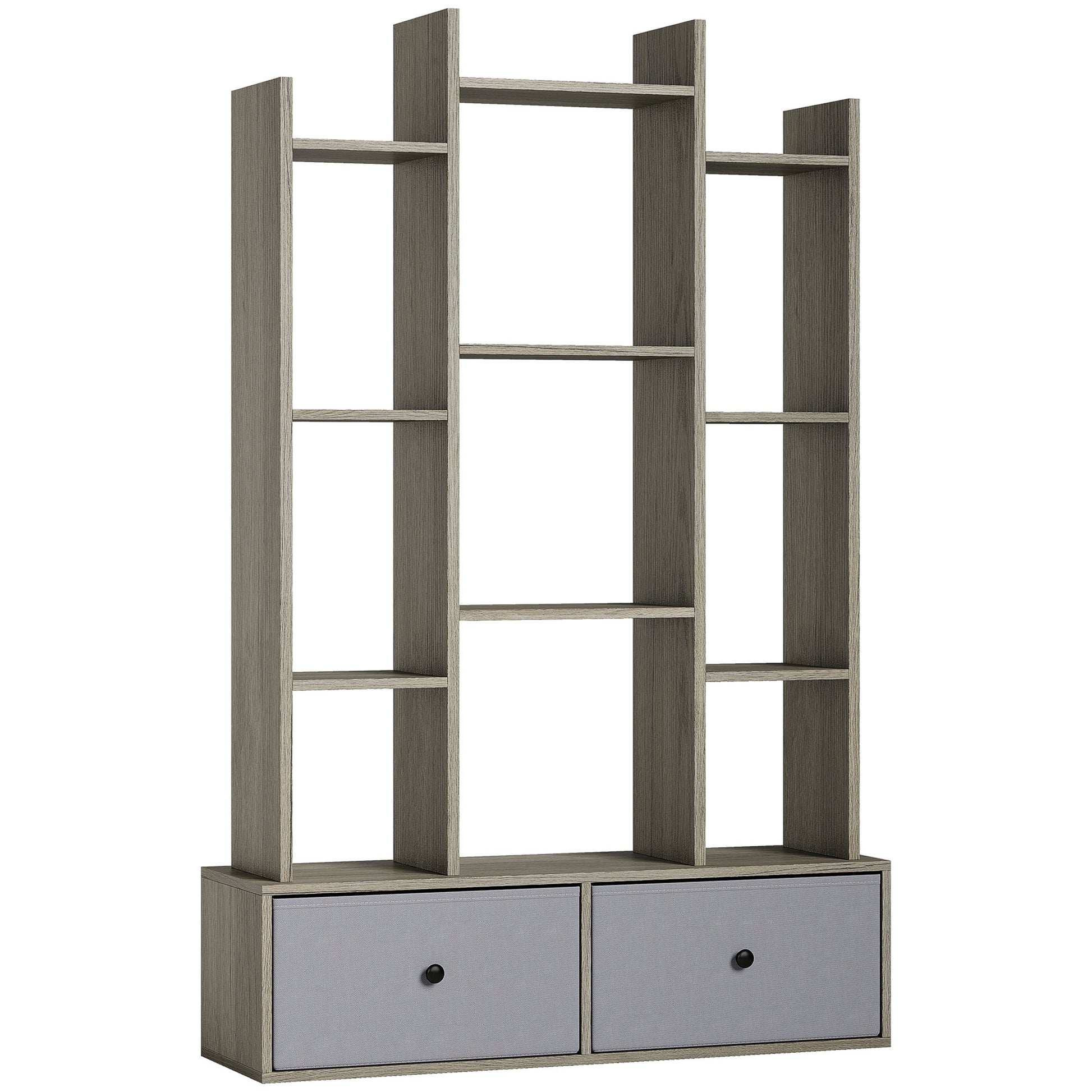 The place to keep all books, ornaments and more, with this HOMCOM tree bookcase. Its 12 cubbies and two drawers provide plenty of organisation and holding room, while a wide base and anti-tip kit prevent unwanted tipping, ensuring family safety. You can create a tidy, personalised display, transforming your living space into a sanctuary of calm and joyful organisation with our bookshelf.