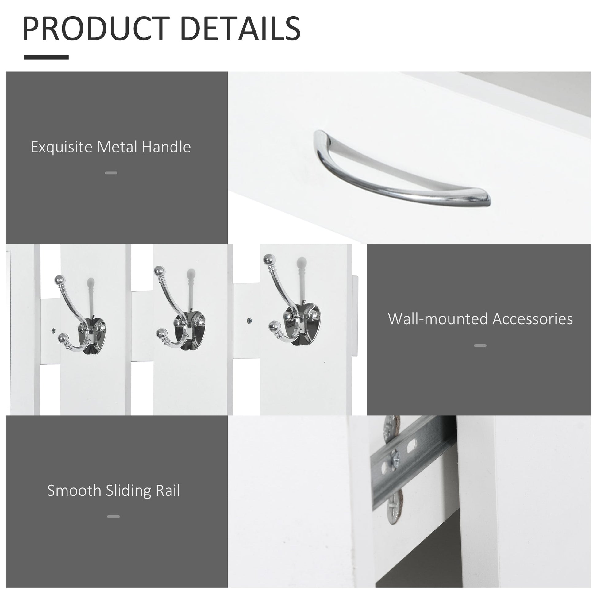 - 3-in-1 design with a mirror, hanging hooks and shoe storage