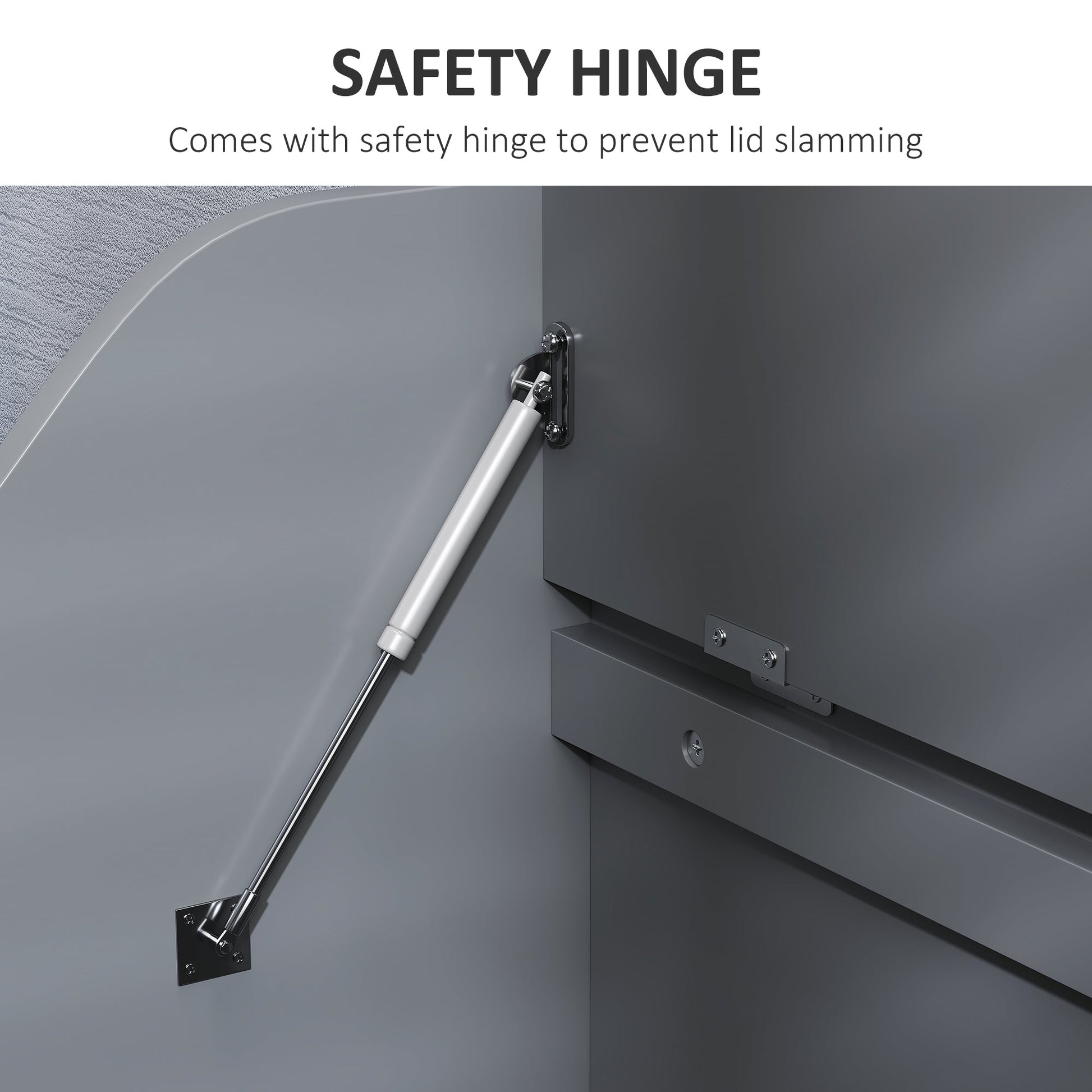 - Safety hinge prevents lid from slamming. Won't accidentally hurt yourself