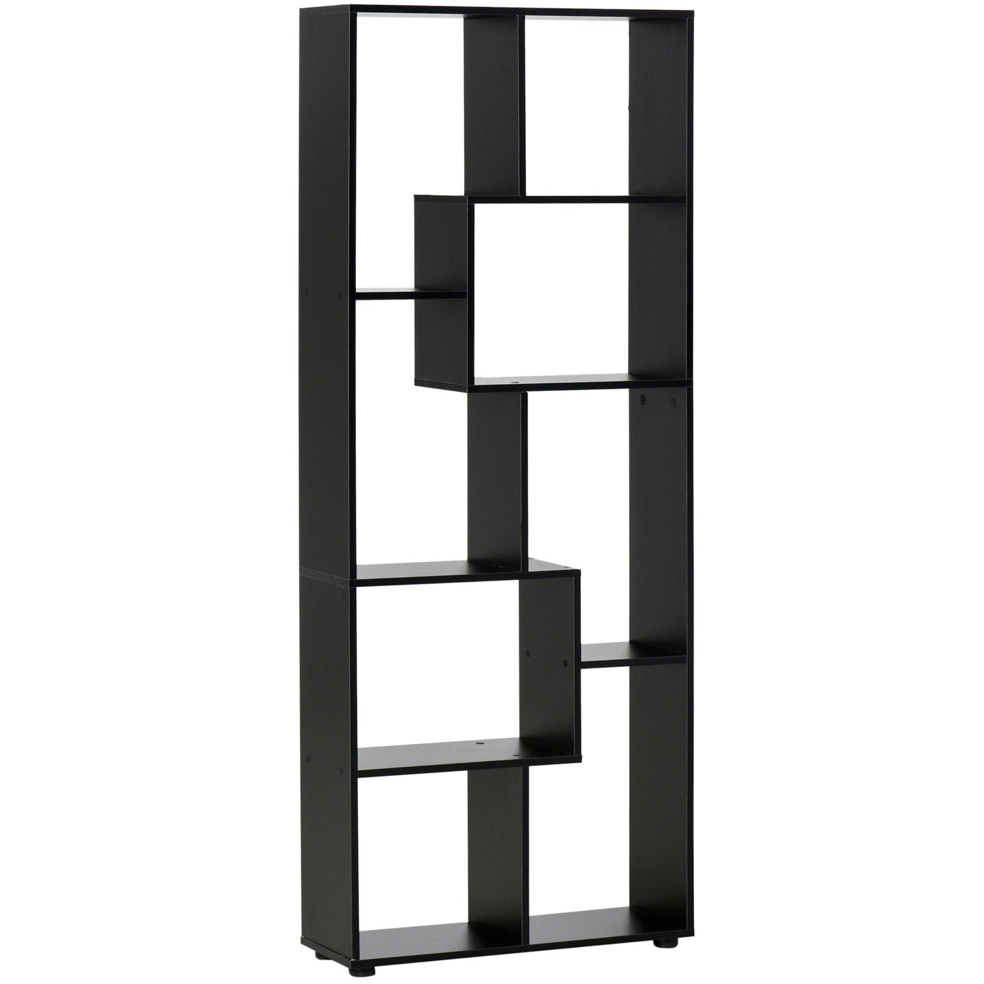 HOMCOM 8-Tier Freestanding Bookcase w/ Melamine Surface Anti-Tipping Foot Pads Home Display Storage Grid Stand Bedroom Living Room Furniture Modern Style - Black