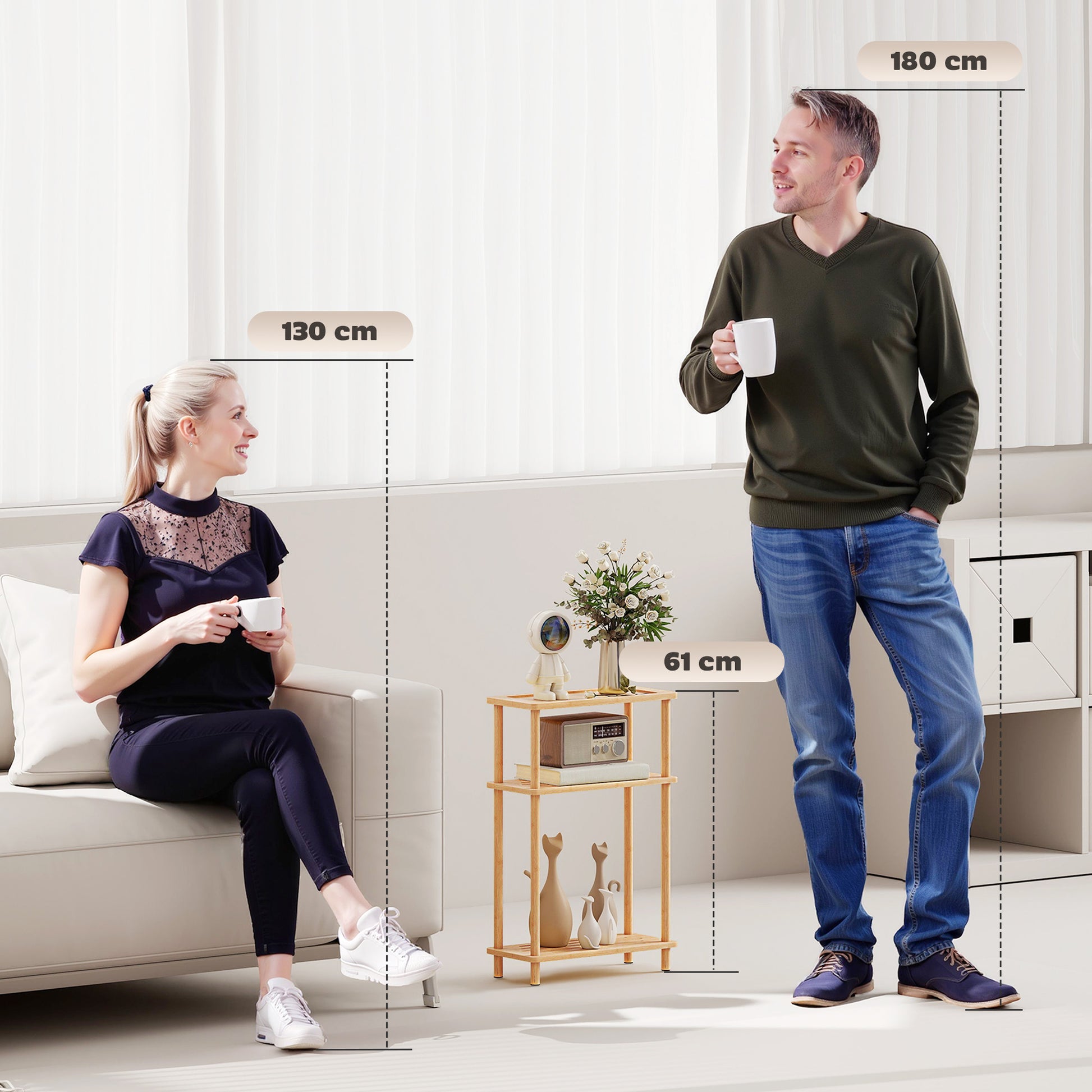 HOMCOM Bamboo Side Table, 3-Tier Slim End Table, Nordic Style, for Living Room, Bedroom, Office, Tool-Free Assembly, Natural Wood Finish