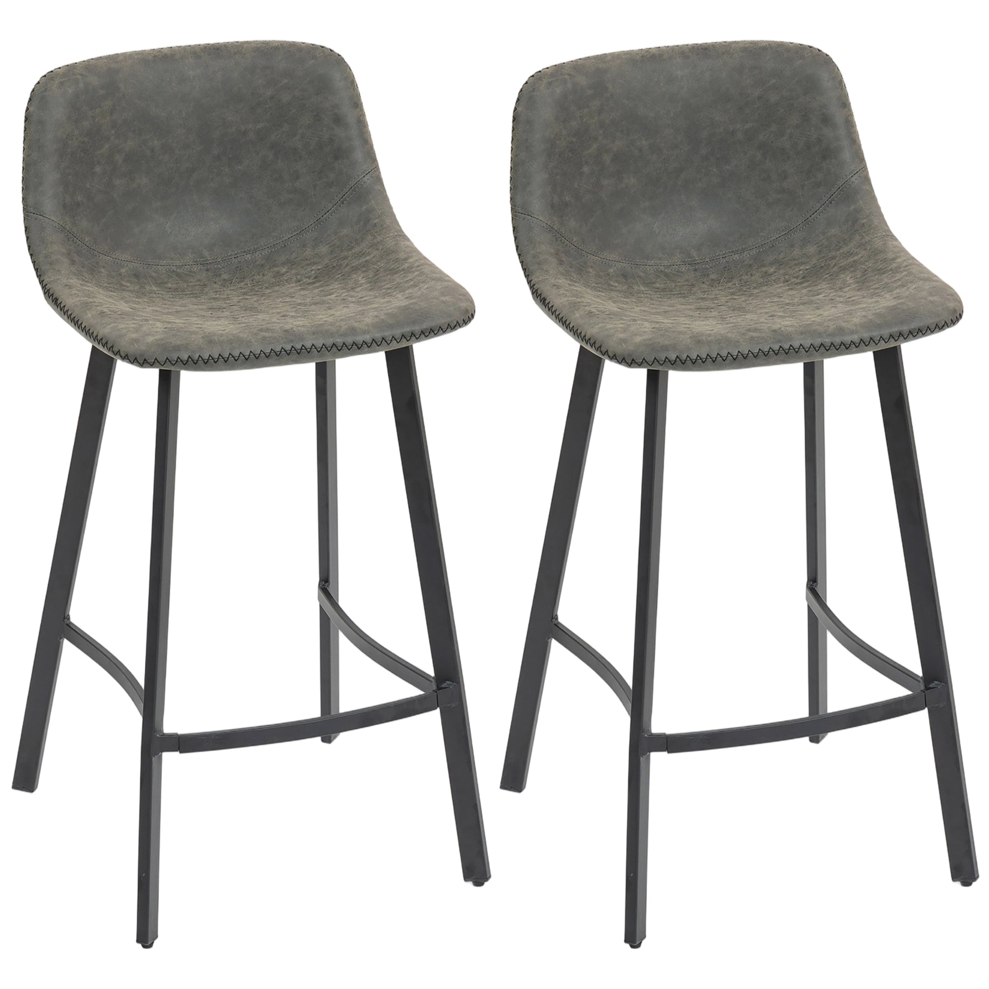 HOMCOM Bar Stools Set of 2, PU Leather Dining Stools with Backrest, Footrest, for Kitchen, Counter, Breakfast Bar, Grey