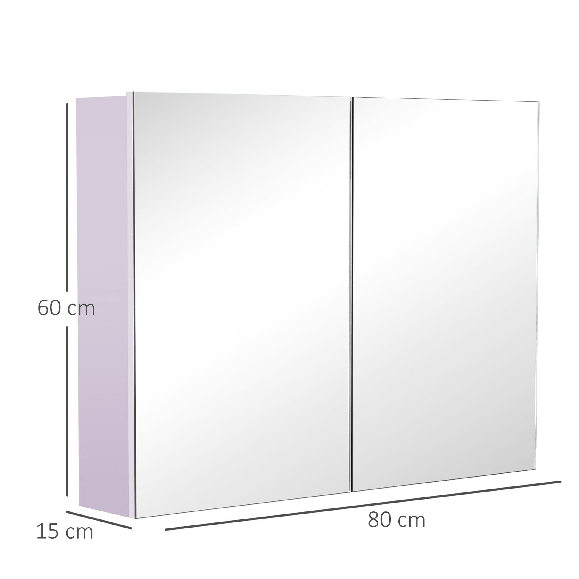 HOMCOM 80 x 15 cm Double Door Bathroom Mirror Cabinet - White
