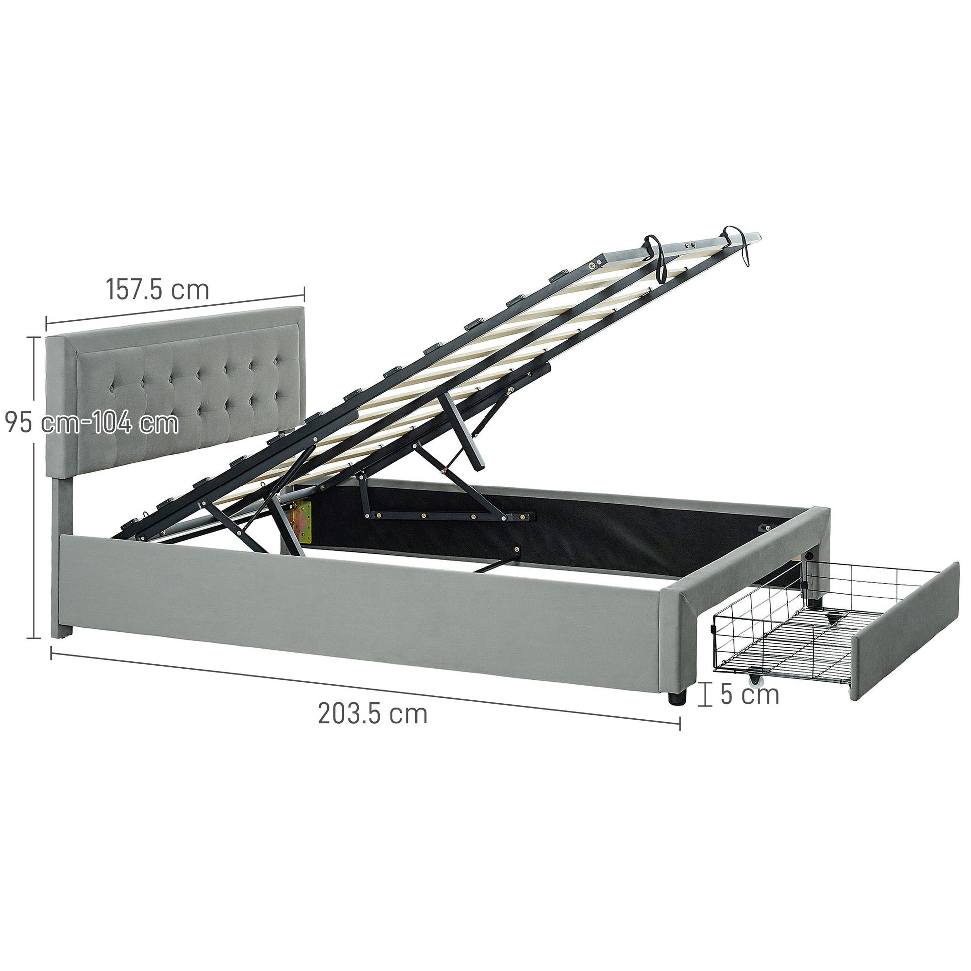 HOMCOM Double Size Ottoman Bed Frame 140W x 193.5D x 95Hcm with Front Drawer - Grey
