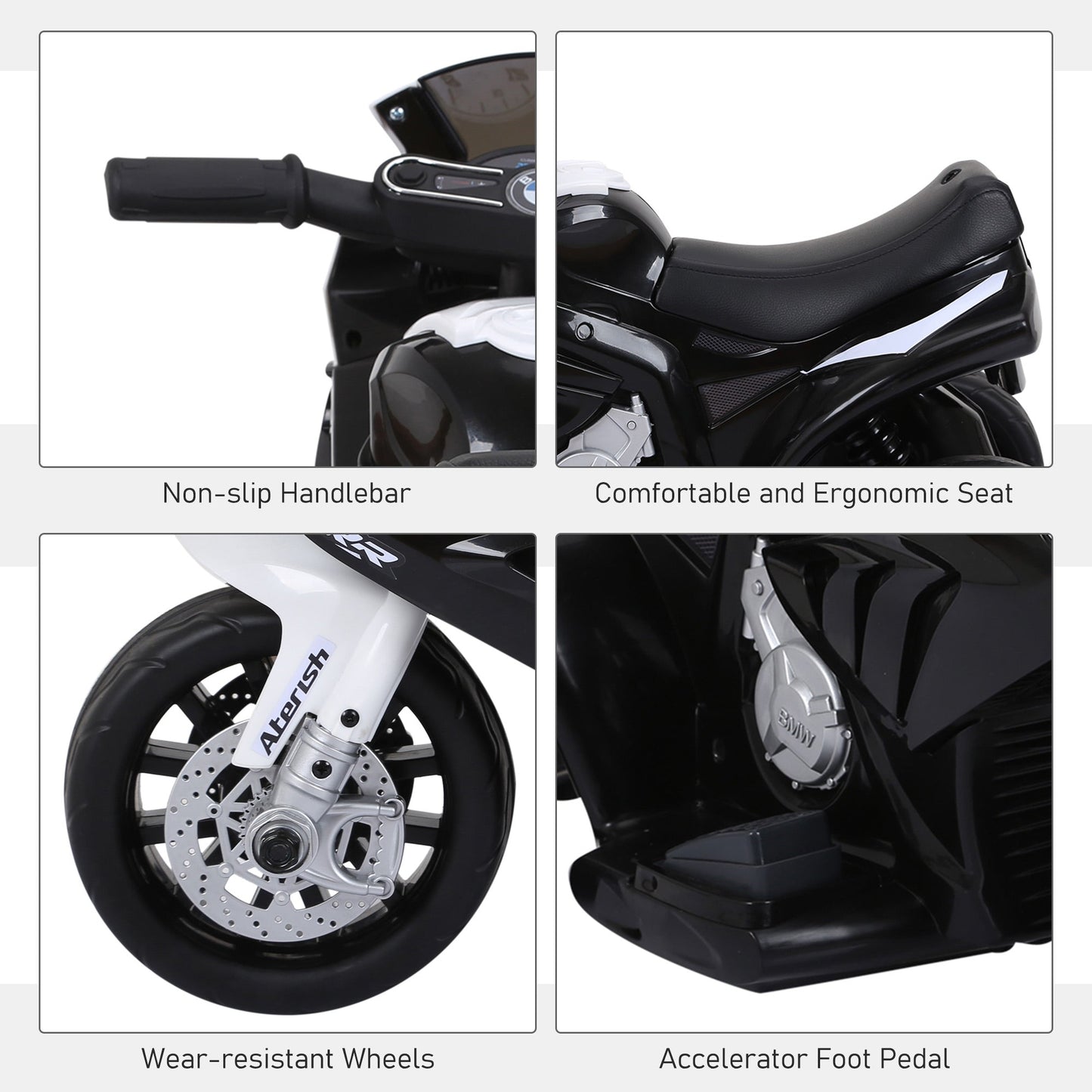HOMCOM Electric Kids Ride on BMW Motorbike W/Headlights and Music, 6 V-Black