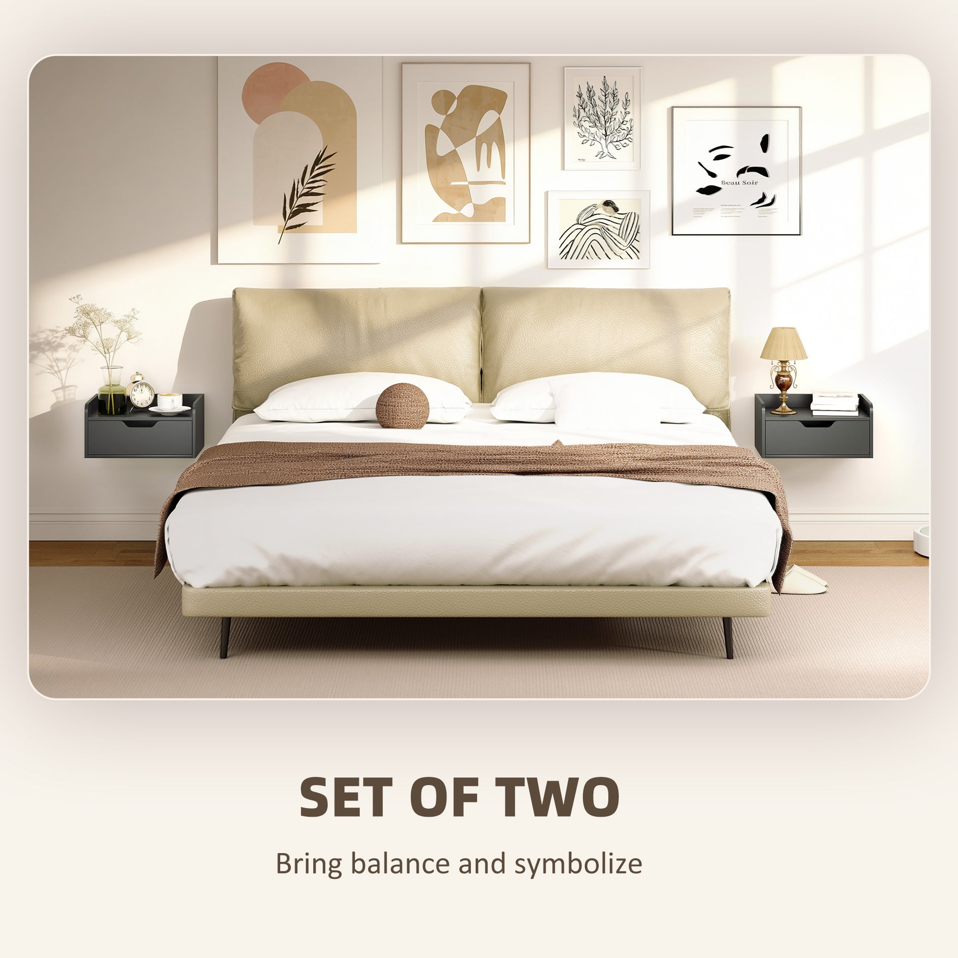 HOMCOM Floating Nightstands Set of 2, Wall Mounted Bedside Table with Drawer for Bedroom, Black