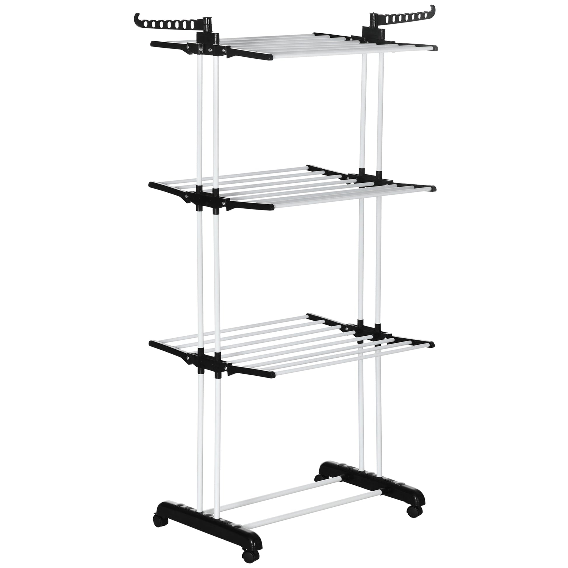 HOMCOM Foldable Clothes Drying Rack, 4-Tier Steel Garment Laundry Rack with Castors for Indoor and Outdoor Use, Black