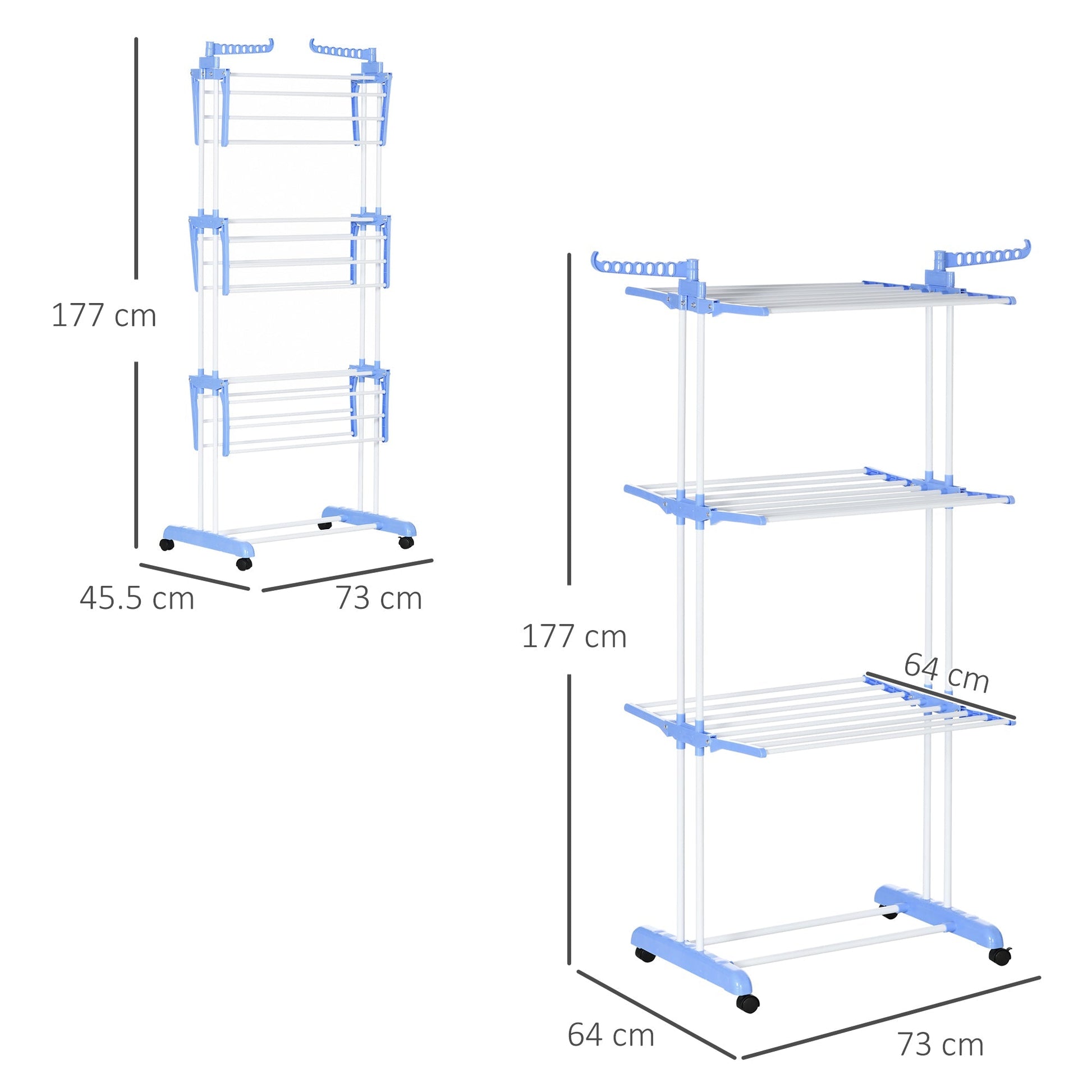 HOMCOM Foldable Clothes Drying Rack, 4-Tier Steel Garment Laundry Rack with Castors for Indoor and Outdoor Use, Blue