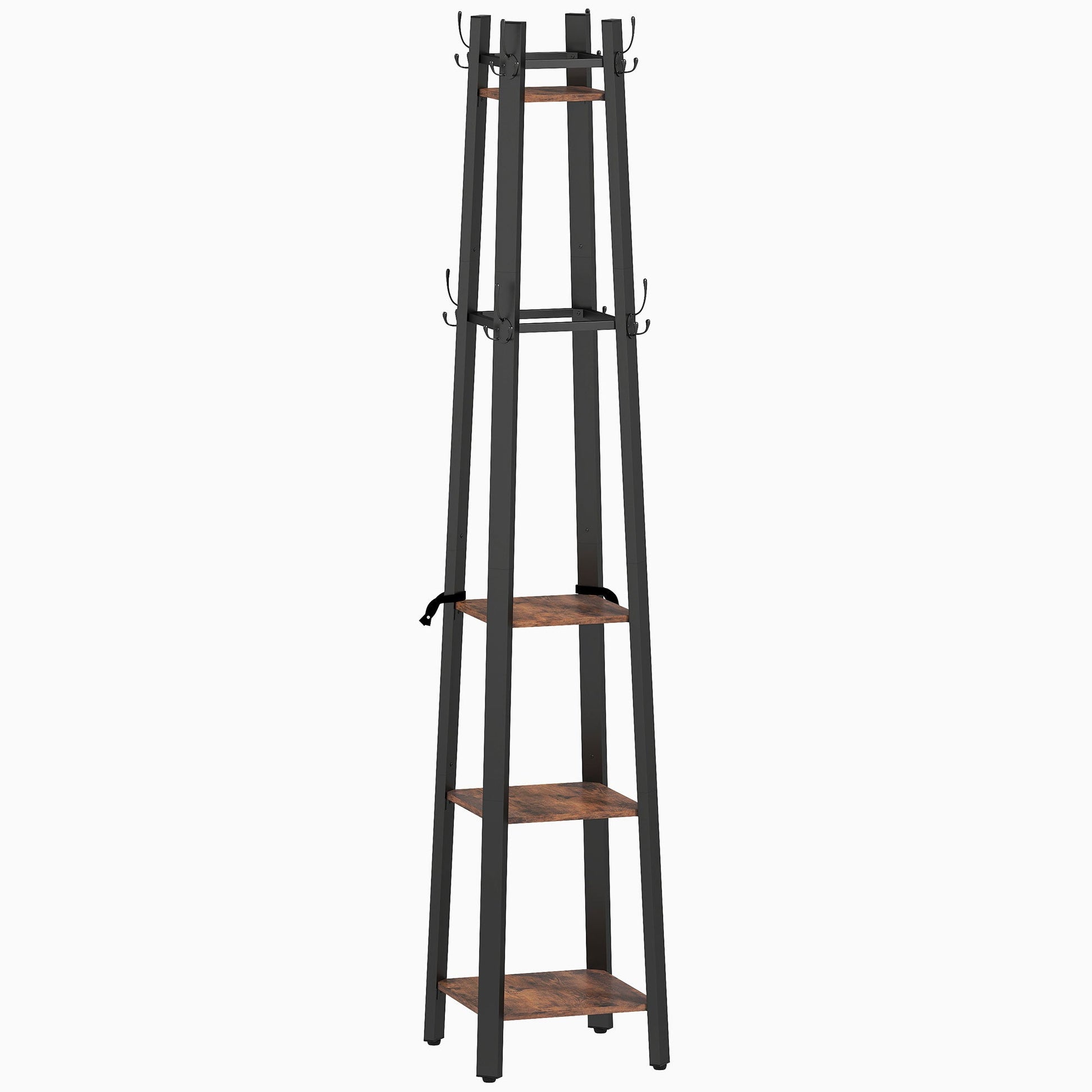 HOMCOM Industrial-Style Four Shelf Coat Stand - Brown/Black
