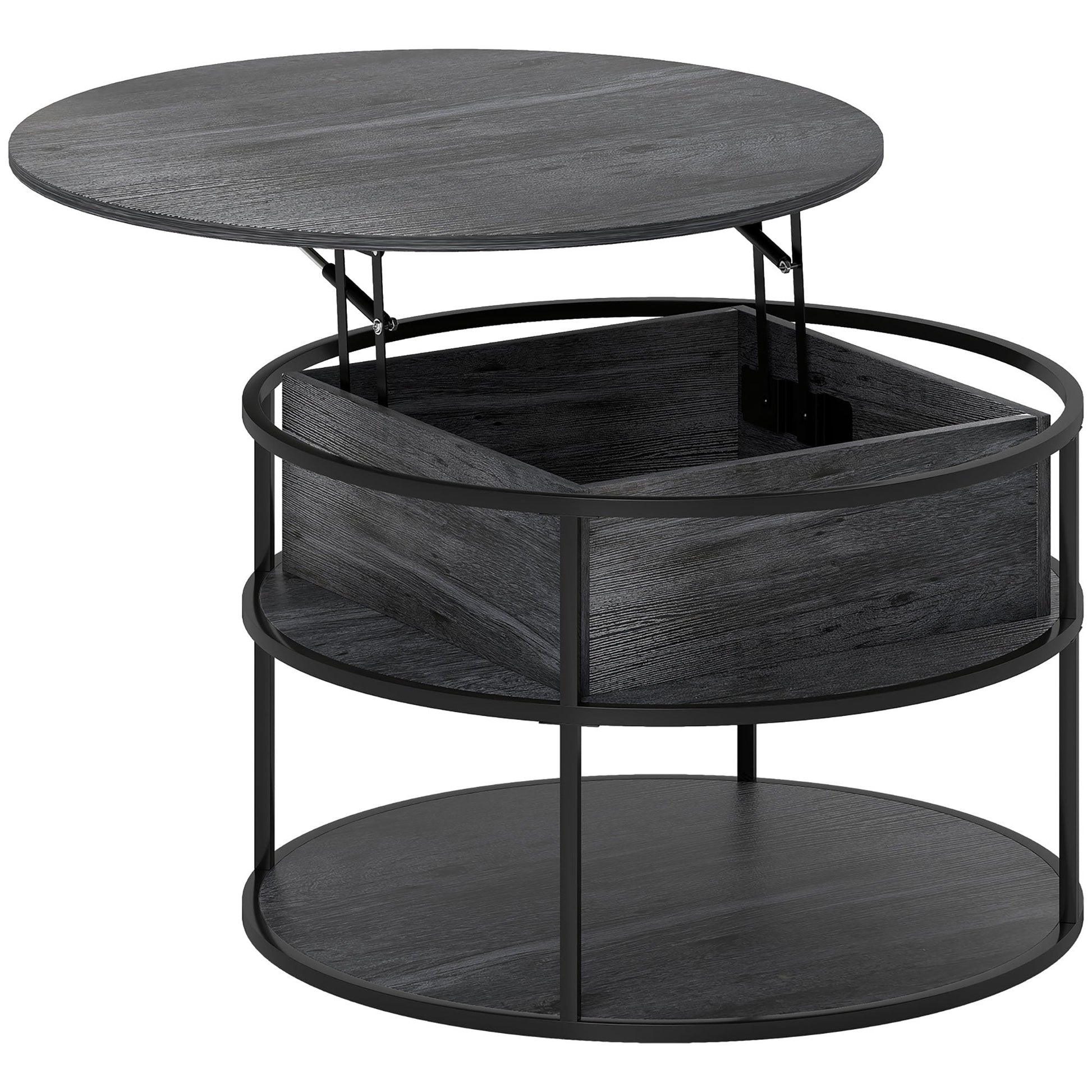HOMCOM Lift Top Coffee Table, Round Coffee Table with Storage Shelf, Hidden Compartment and Steel Frame for Living Room, Home Office, Charcoal Grey