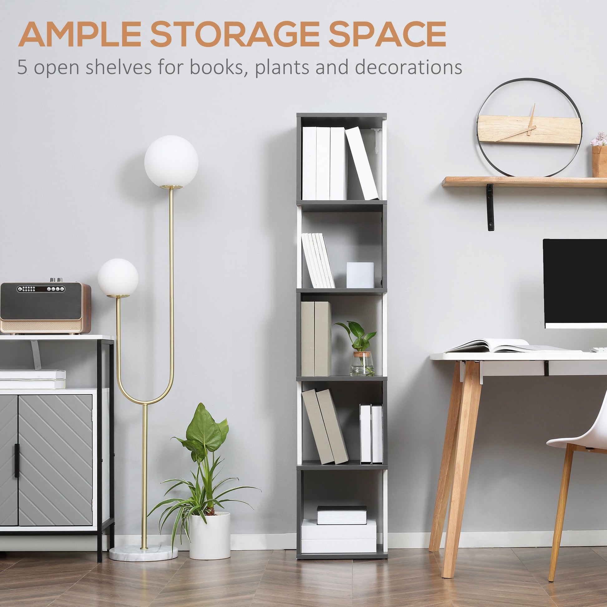 HOMCOM Modern 5-Tier Bookshelf, Freestanding Bookcase Storage Shelving for Living Room Home Office Study, White and Dark Grey