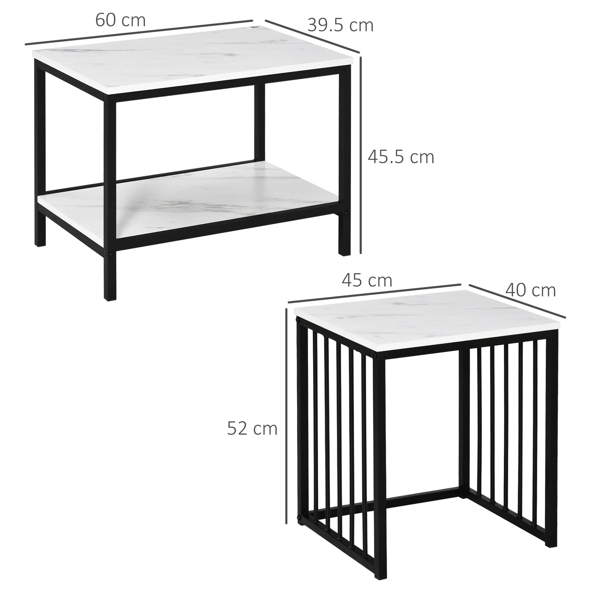 HOMCOM Modern Coffee Table Set of Two, Marble-Effect Nesting Side Tables with Steel Frame for Living Room, White, Black