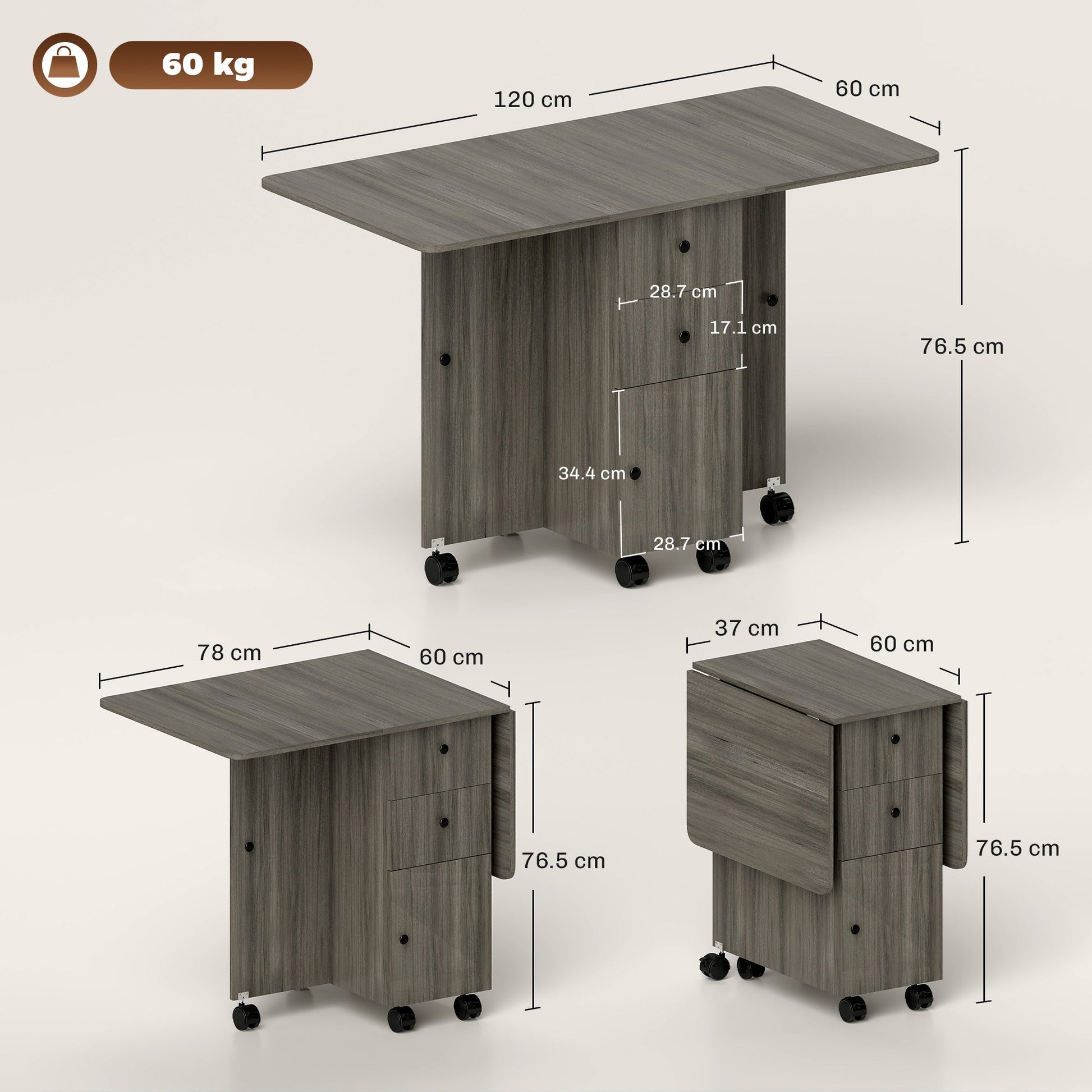 HOMCOM Multi-Storage Six-Person Drop Leaf Dining Table - Grey