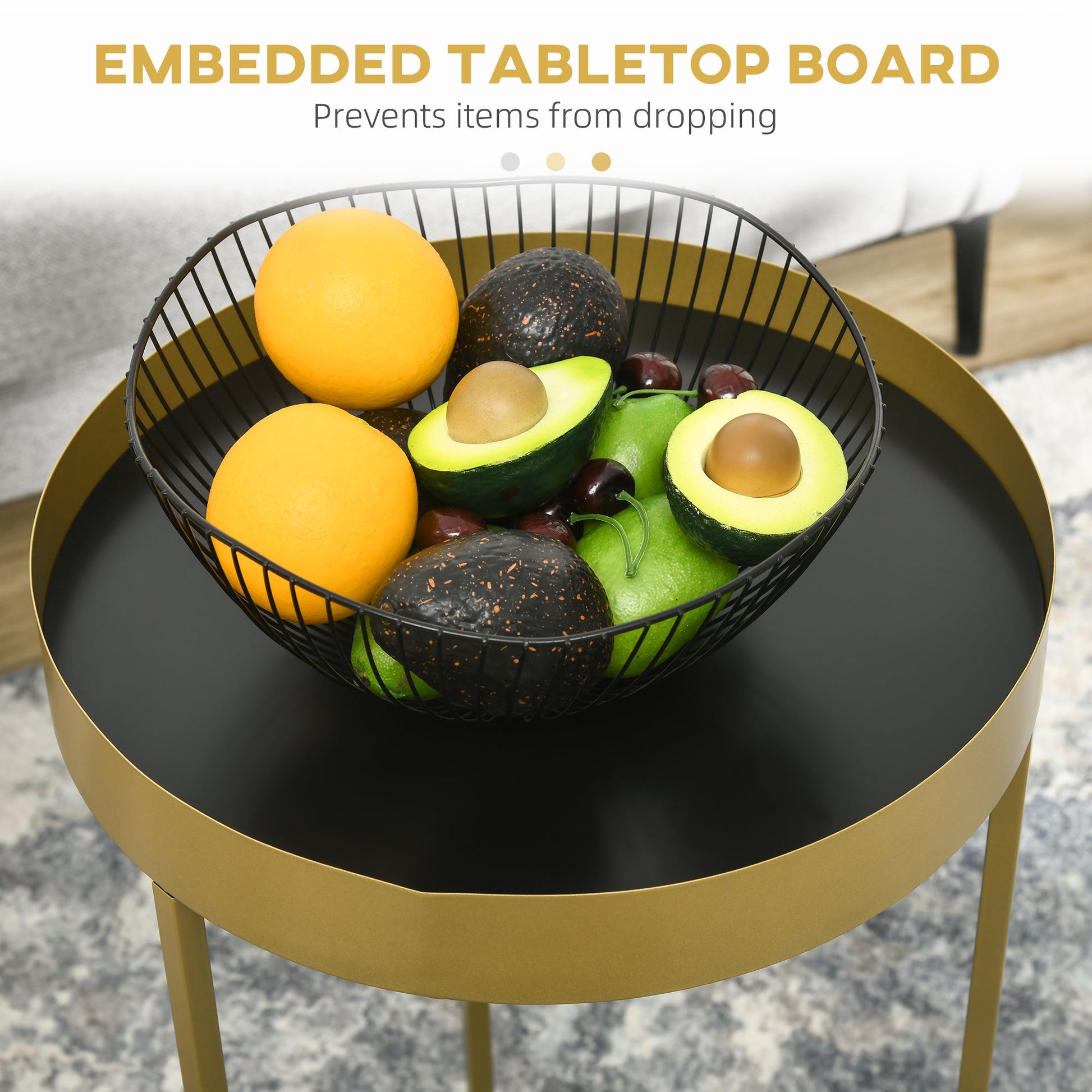 HOMCOM Nest of Tables, Round Coffee Table Set of 2, Nesting Tables with Embedded Tabletop and Metal Frame, Gold Side Table for Living Room, Bedroom
