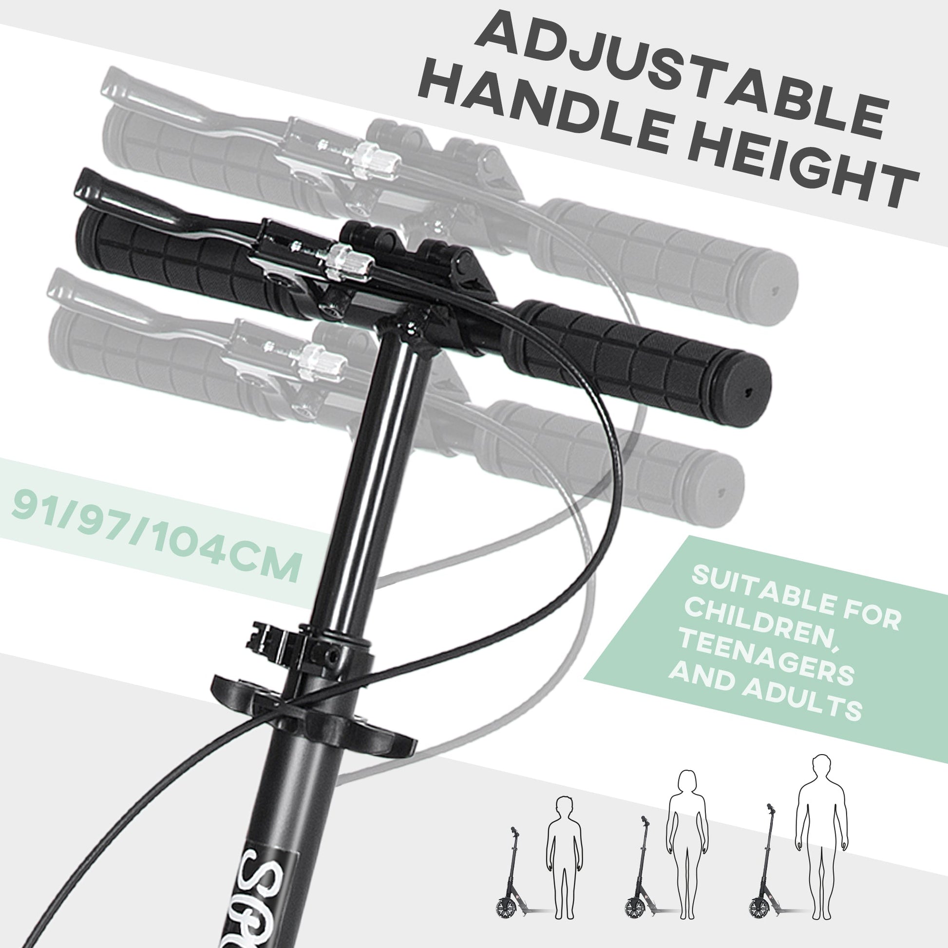 HOMCOM One-click Folding Kick Scooter for 14+ w/ Adjustable Handlebar, Push Scooter with Kickstand, Dual Brake System, Shock Absorber, 200mm Wheels & ABEC-9 Bearings