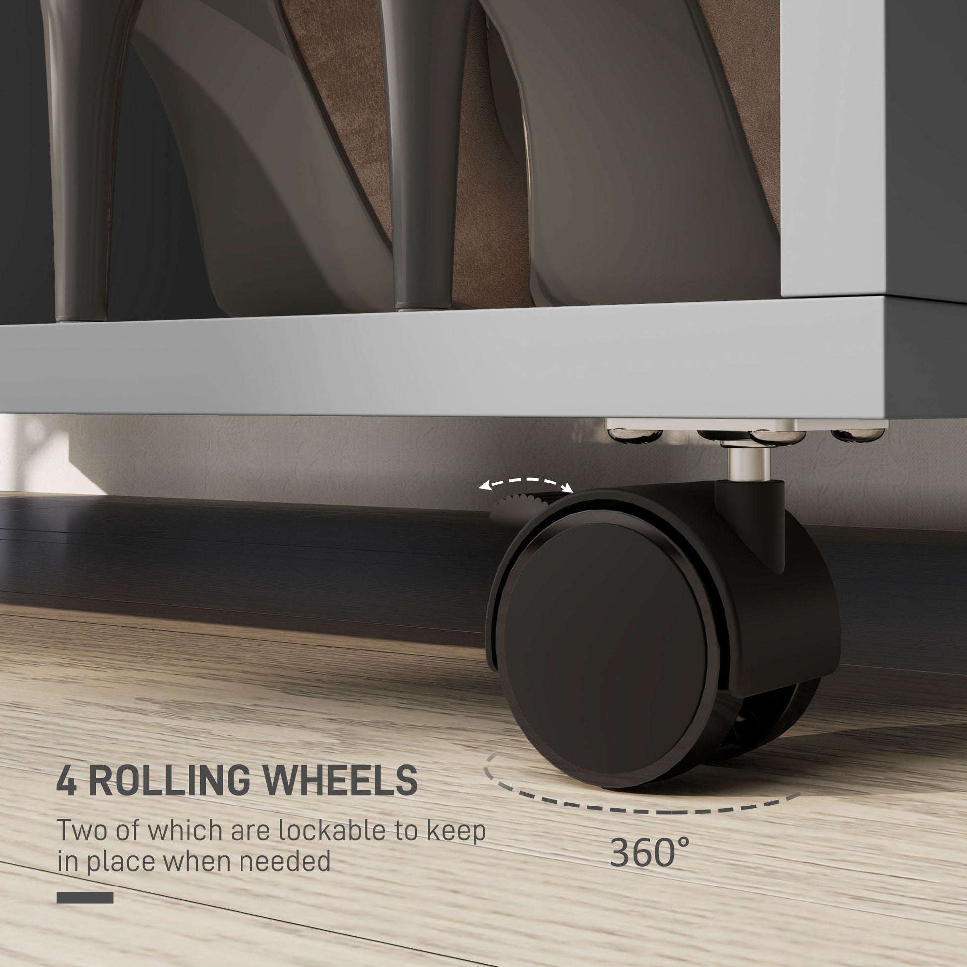 HOMCOM Open Wardrobe on Wheels, Bedroom Wardrobe with Clothes Hanging Rail, 2 Storage Shelves, Mobile Garment Rack for Cloakroom, Hallway, Grey