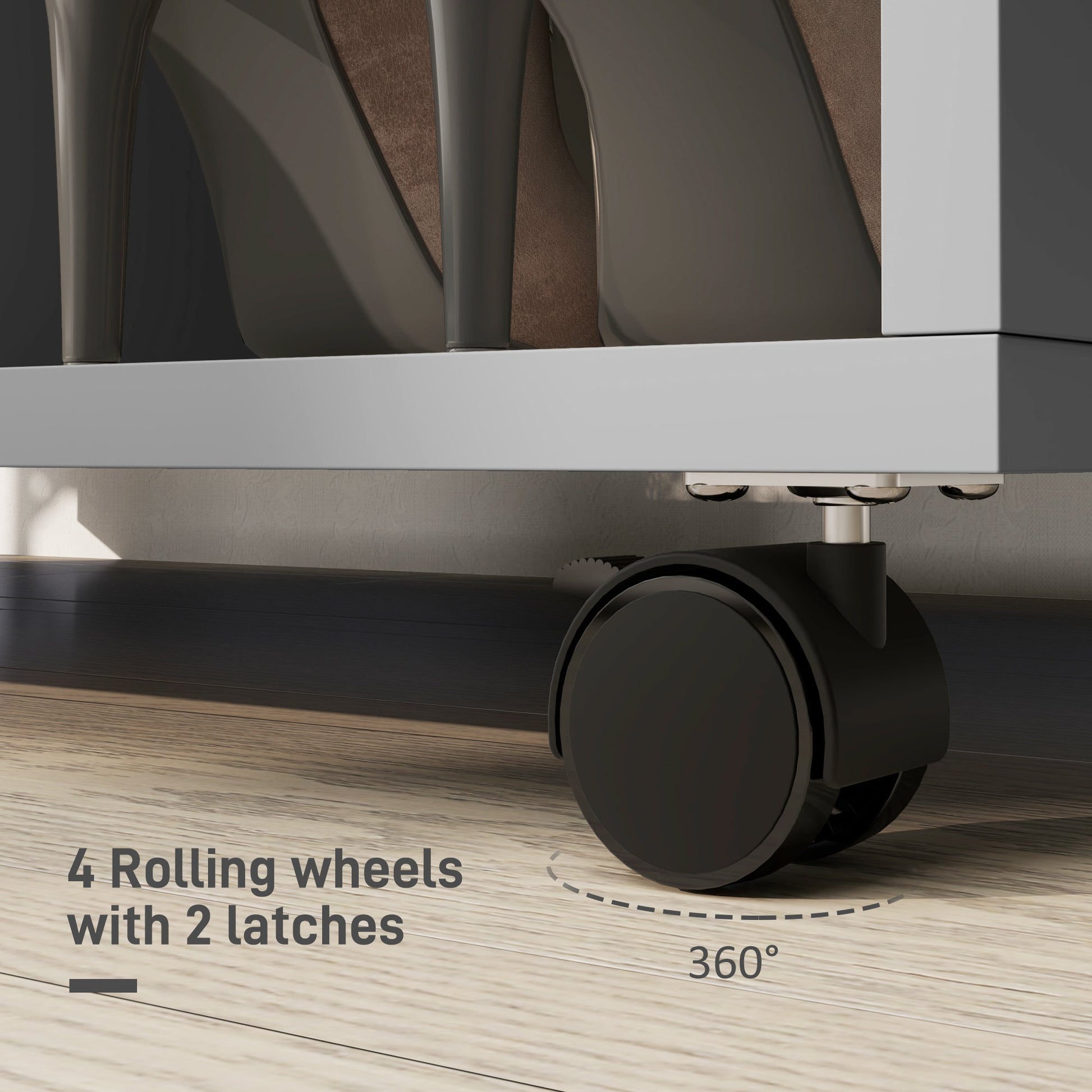 HOMCOM Open Wardrobe on Wheels, Bedroom Wardrobe with Clothes Hanging Rail, 3 Storage Shelves, Mobile Garment Rack for Cloakroom, Hallway, Grey
