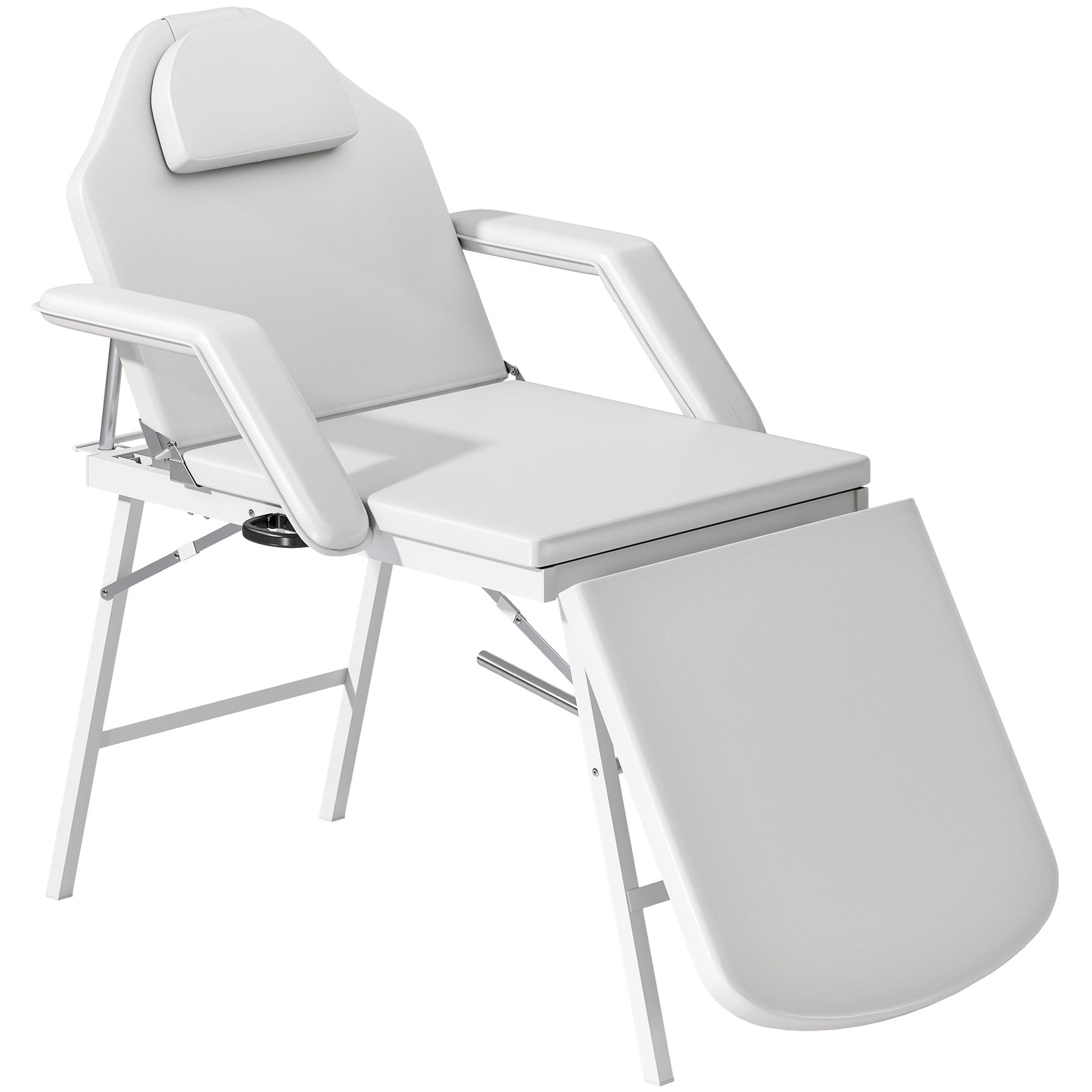 HOMCOM Portable Massage Table, 3 Section Adjustable Beauty Bed, Foldable Massage Bed with Face Hole, Recliner Chair with Removable Headrest and Armrests for Spa, Lash, Tattoo, White