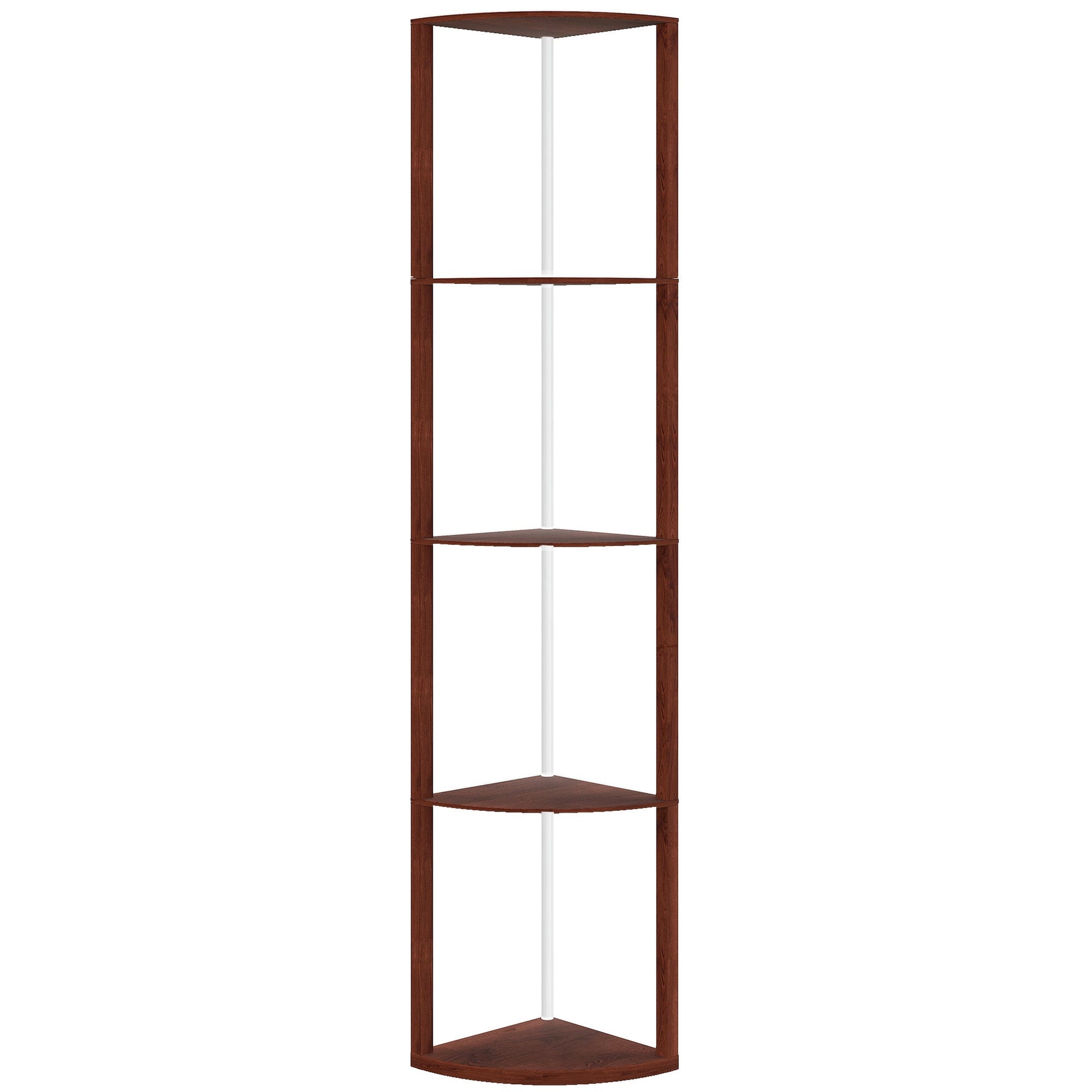 HOMCOM RGB LED Floor Lamp with Shelves, 5-Tier Dimmable Standing Lamp with Adjustable Brightness and Remote Control, Modern Corner Display Shelf Unit for Living Room Bedroom Office, Brown