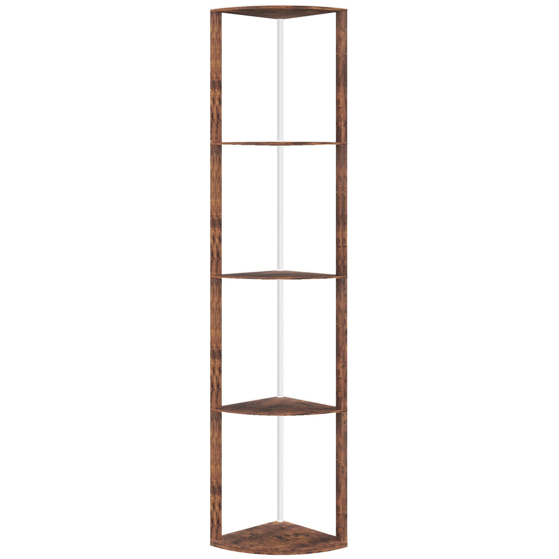 HOMCOM RGB LED Floor Lamp with Shelves, 5-Tier Dimmable Standing Lamp with Adjustable Brightness and Remote Control, Modern Corner Display Shelf Unit for Living Room Bedroom Office, Rustic Brown