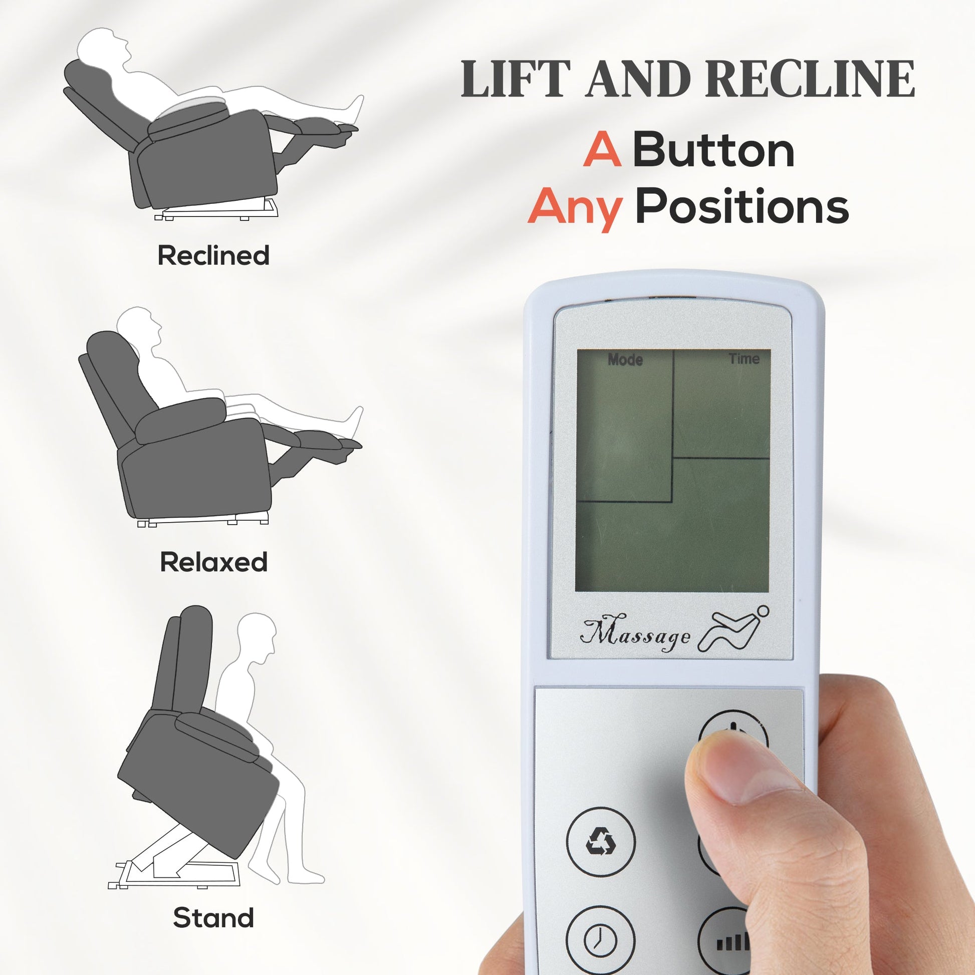 Suffering from knee, back, and other movement issues and pain? Look to this HOMCOM power lift armchair to make life easier. With a touch of the remote button, you can go from standing up to sitting down - all at an easy-position 45 angle. Features eight massage points through the back and lower-body area, with six vibration massage modes with three intensity levels - how to relax is up to you. Completed with a 160 reclining back and footrest for true relaxation.